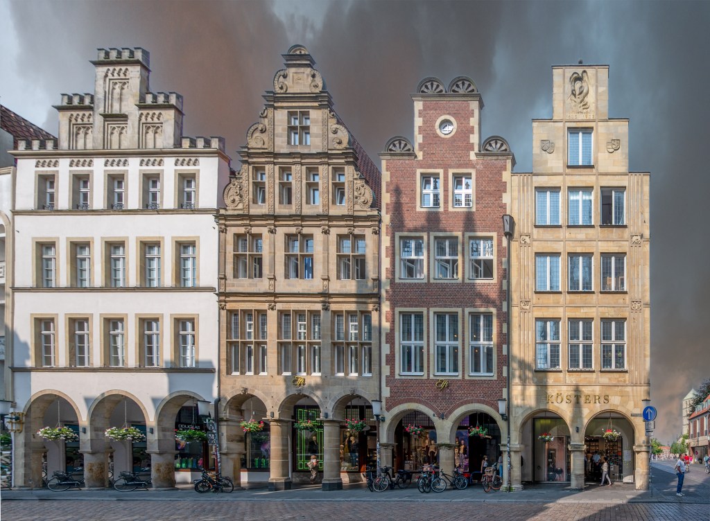 In Münster leggen we traditiegetrouw aan langs de lange kade van de stad waar zich veel luidruchtige terrassen bevinden. Het voordeel is dat het hier in Duitsland rond halftwaalf stil is. Heel anders dan in Nederland waar de herrie na twaalven meestal toeneemt. De haven van Münster is ook prachtig met oude pakhuizen en nieuwe gebouwen die daarbij passen. We blijven er twee nachten liggen en bezoeken de binnenstad.