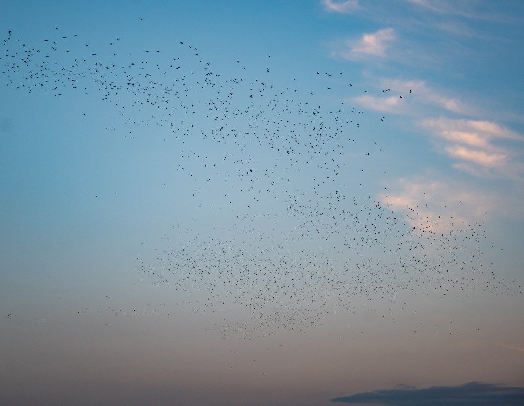 Avond op de IJsselkade van Doesburg. Een grote zwerm kraaien vliegt luidkeels over, op zoek naar een rustplaats voor de nacht.