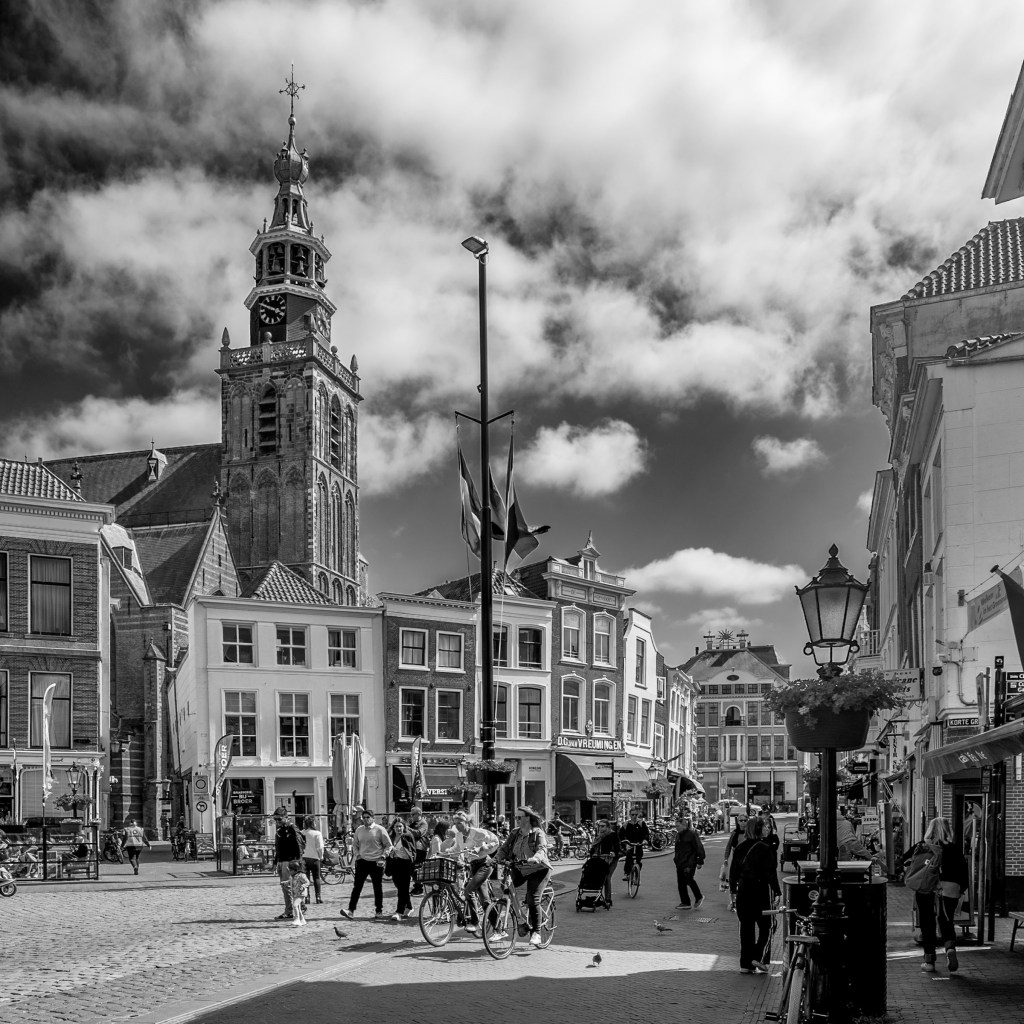 Dat heeft mij natuurlijk niet belet om in de steden waar we lagen te fotograferen. Dat kan ik sowieso niet laten. In dit bericht zal ik die foto’s laten zien zodat jullie op de hoogte blijven. Na mijn laatste tentoonstelling in de Lieve Vrouw in Amersfoort met vierkante zwart-wit foto’s van de stad (Amersfoort, Utrecht en Amsterdam) ben ik verknocht geraakt aan zwart-wit. Die vorm geeft de ruimte van de stad en de contrasten uitstekend tijdloos weer. En ook in de straat- en portretfotografie geeft zwart-wit een mooi resultaat. Dat heb ik in de portretgroep in Amersfoort geleerd. Daarom zijn de foto’s die nu volgen in zwart-wit.