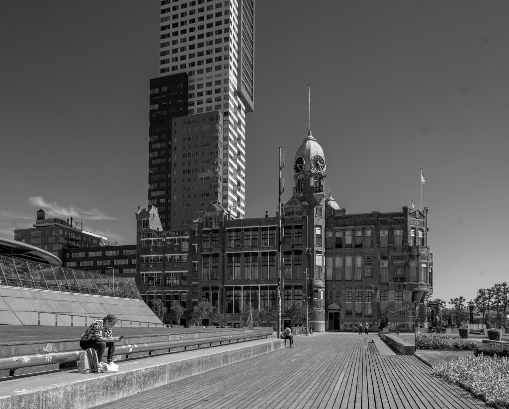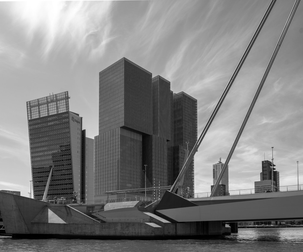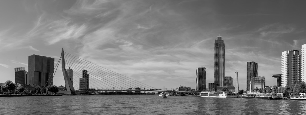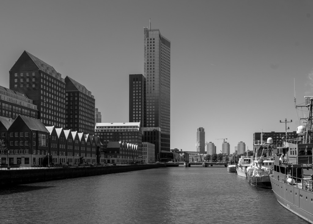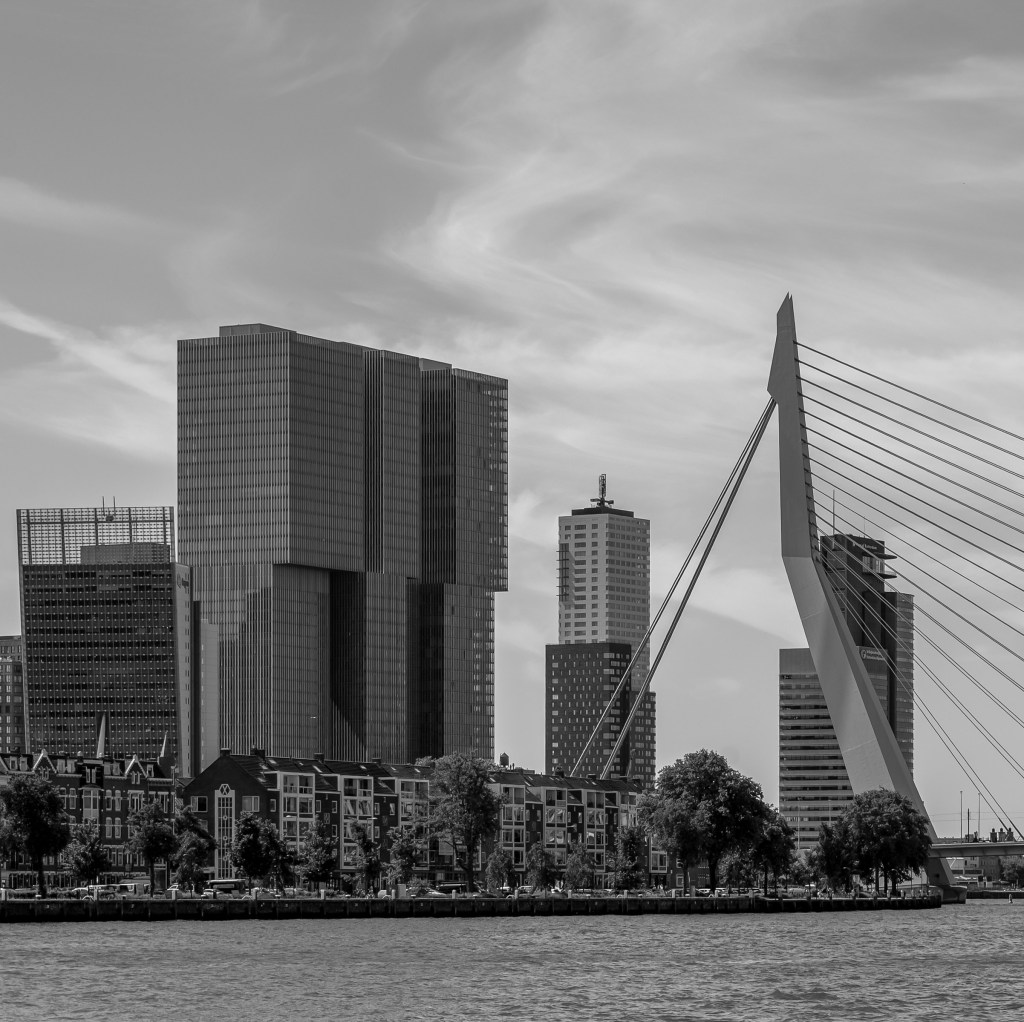 Als we het Noordereiland ronden zien we het iconische silhouet van Rotterdam. We worden er van overtuigd dat Rotterdam eigenlijk de enige wereldstad van ons land is. Riek Bakker heeft als directeur van de Dienst Stadsontwikkeling, later de Dienst Stedenbouw en Volkshuisvesting, haar schouders onder het nieuwe gezicht van de stad gezet. Rotterdam verkeerde ten tijde van Burgemeester Bram Peper, in de jaren 80 van de vorige eeuw in een crisis. Door het verlies van arbeidsplekken en de problemen in de volkshuisvesting had men geen aandacht voor de ontwikkeling van de stad zelf. De stad stond met de rug naar de Nieuwe Maas. Riek heeft het college en alle beleidsmakers doen inzien dat de Kop van Zuid samen met de aanleg van de Erasmusbrug de stad weer naar de rivier kon keren en Rotterdam een nieuw elan geven. Ze bouwde “Manhattan aan de Maas” op de Kop van Zuid. Als je Rotterdam binnenvaart voel je dat gelijk. En als je over de Wilhelminapier loopt voel je de prachtige ruimte die hier door de hoge gebouwen wordt geschapen. Gelukkig zijn veel oude gebouwen gespaard gebleven of omgevormd naar een andere functie waardoor ook de oude havensfeer niet verloren is gegaan.