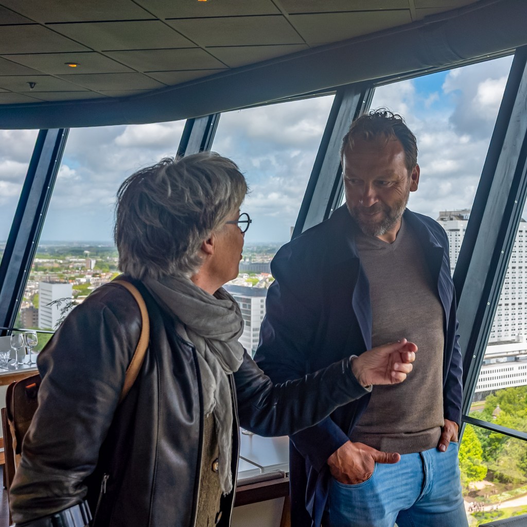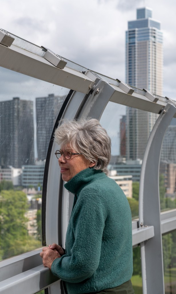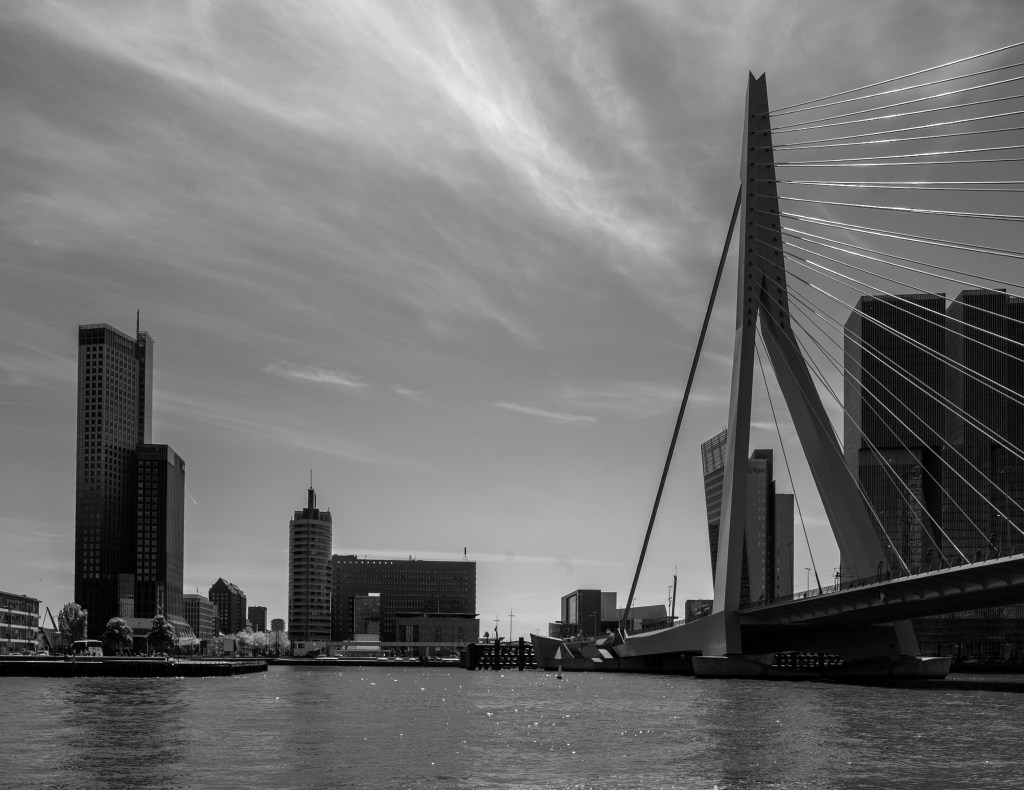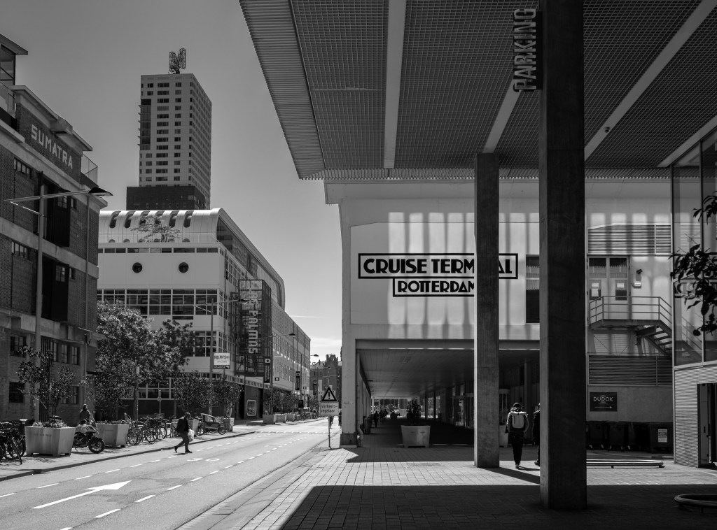 Als we het Noordereiland ronden zien we het iconische silhouet van Rotterdam. We worden er van overtuigd dat Rotterdam eigenlijk de enige wereldstad van ons land is. Riek Bakker heeft als directeur van de Dienst Stadsontwikkeling, later de Dienst Stedenbouw en Volkshuisvesting, haar schouders onder het nieuwe gezicht van de stad gezet. Rotterdam verkeerde ten tijde van Burgemeester Bram Peper, in de jaren 80 van de vorige eeuw in een crisis. Door het verlies van arbeidsplekken en de problemen in de volkshuisvesting had men geen aandacht voor de ontwikkeling van de stad zelf. De stad stond met de rug naar de Nieuwe Maas. Riek heeft het college en alle beleidsmakers doen inzien dat de Kop van Zuid samen met de aanleg van de Erasmusbrug de stad weer naar de rivier kon keren en Rotterdam een nieuw elan geven. Ze bouwde “Manhattan aan de Maas” op de Kop van Zuid. Als je Rotterdam binnenvaart voel je dat gelijk. En als je over de Wilhelminapier loopt voel je de prachtige ruimte die hier door de hoge gebouwen wordt geschapen. Gelukkig zijn veel oude gebouwen gespaard gebleven of omgevormd naar een andere functie waardoor ook de oude havensfeer niet verloren is gegaan.