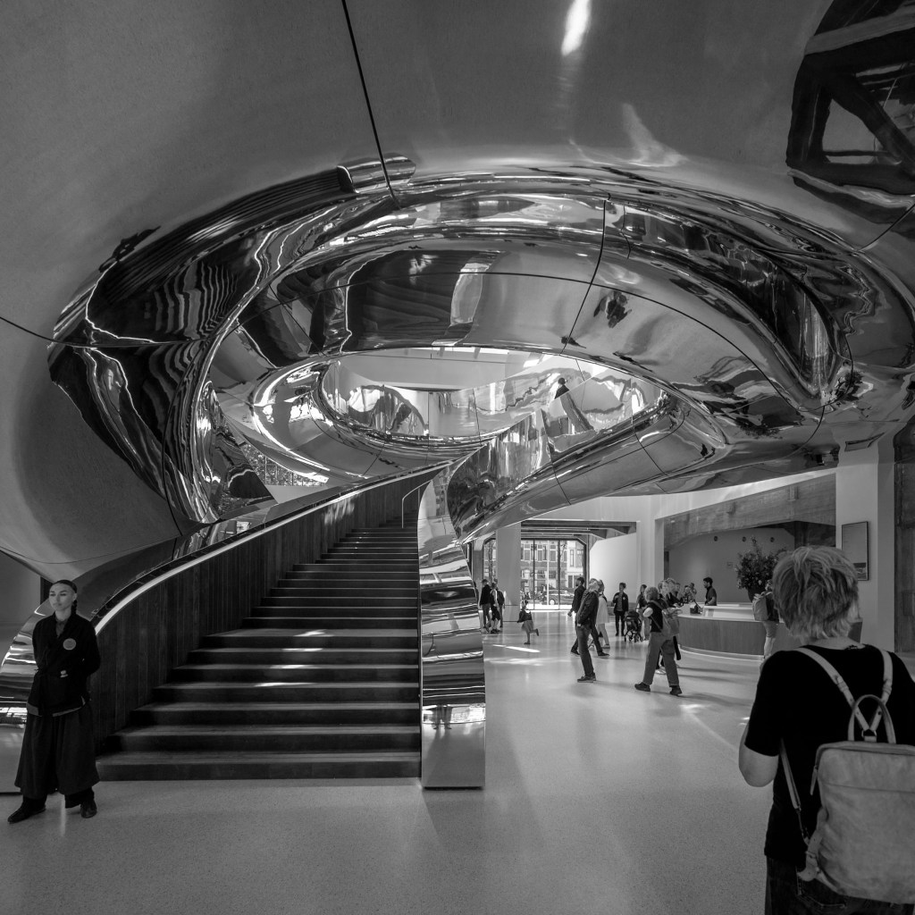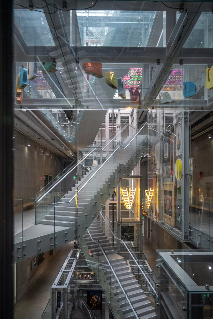 Als we een kopje koffie op het terras van hotel New York hebben gedronken zien we aan de overzijde het nieuwe Fenix liggen. Het kunstmuseum over migratie. Toepasselijker dan in Rotterdam kan dit museum niet staan. De plek waar de HAL als vanouds de emigranten naar het beloofde land Amerika bracht. En de plek waar de nieuwe gastarbeiders vanaf de jaren 70 naar Nederland gehaald werden om het vuile werk te doen. Het museum geeft daar een mooie inkijk in. Iconisch is de trap die midden in de grote voormalige Havenloods uit 1923 staat. Ooit was Fenix de grootste overslagloods van de wereld, ontworpen door architect Cornelis van Goor en gebouwd in opdracht van de Holland-Amerika Lijn. Toen heette het pakhuis nog Loods San Francisco en was 360 meter lang. Het gebouw is nu in tweeën geknipt en Architect Ma Yasong heeft de iconische Tornado (dubbele trap) toegevoegd zodat je vanuit het museum boven uit de Loods kunt komen en een prachtig uitzicht krijgt over het voormalige havengebied en de Nieuwe Maas.