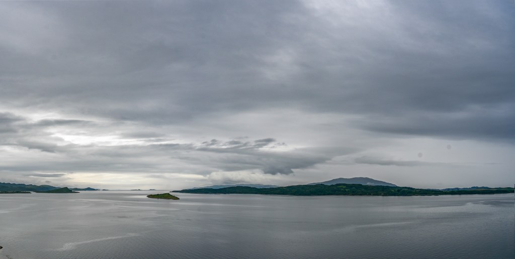 We staan komende nachten op een hoog gelegen camping iets ten zuiden van Oban.