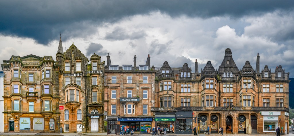 Gisteren hebben we het zoute water opgezocht door naar Invararay te rijden. Deze plek ligt aan een lange uitloper van Loch Fyne. Maar eerst hebben we boodschappen gedaan in Alexandria. Het centrum van de stad lijkt te worden gevormd door een groot parkeerplein tussen drie supermarkten. De Aldi, the Little en een plaatselijke naam. Vlak daarvoor maak ik foto’s van een industrieel architectonisch monument dat half ruïne en nog half in gebruik is. De Schotse architectuur is woest monumentaal. Het contrast met het prachtige golvende groene zachte landschap kan haast niet groter zijn.