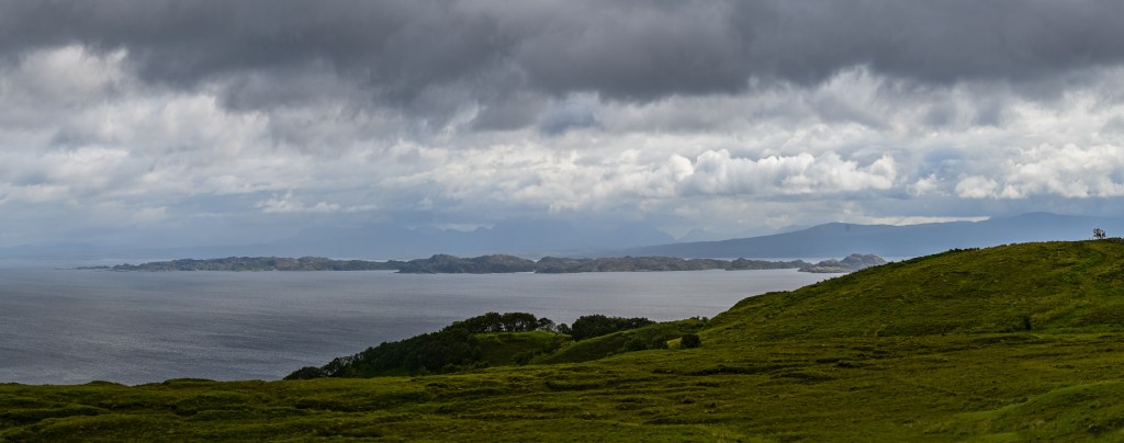 Na drie dagen verruilen we onze slecht geoutilleerde camping bij Oban voor de mooie camping naast de Ben Navis in Fort William. We eten slechte biefstuk in het naastgelegen restaurant waar ik prompt mijn camera laat liggen. Dat merk ik bij het eerste mooie uitzichtpunt als we de volgende dag al een half uur onderweg zijn, omdat ik mis grijp. Omdat we geen klimmers zijn besluiten we na een moment van keuzestress, de volgende dag het eiland Skye op te rijden en gaan helemaal door tot een camping zowat aan de Sea of the Hebrides. Daar hebben we geen spijt van. Onderweg worden we getrakteerd op prachtige uitzichten in wisselende landschappen waarbij het groen van de gladde heuvels ons wel het meest bekoort.