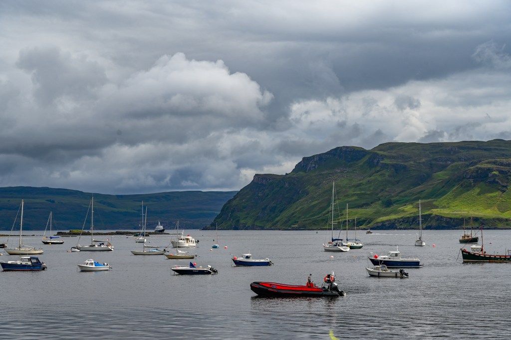 Portree viel tegen. De gekleurde huisjes waren een beetje fake. Het uitzicht vanaf de kade was daarentegen prachtig.