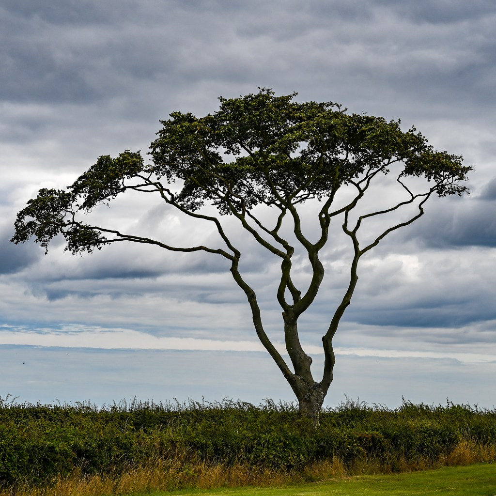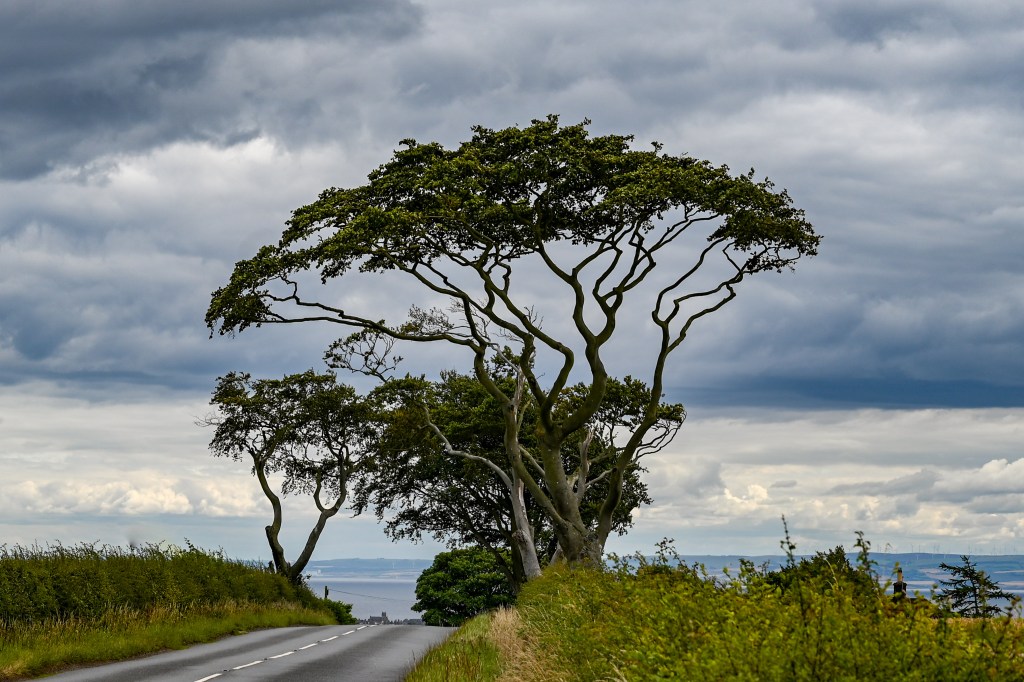 Onderweg terug naar de camping zien we prachtige bomen die op vliegdennen lijken, zoals ze hier en daar langs de Nederlandse kust staan, maar het niet zijn.