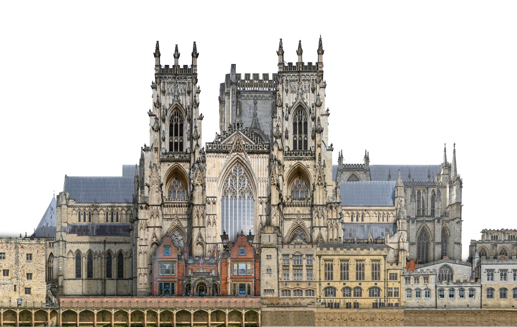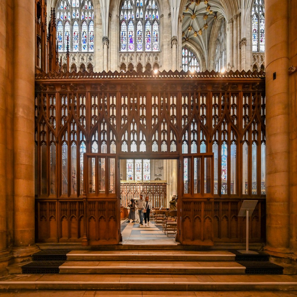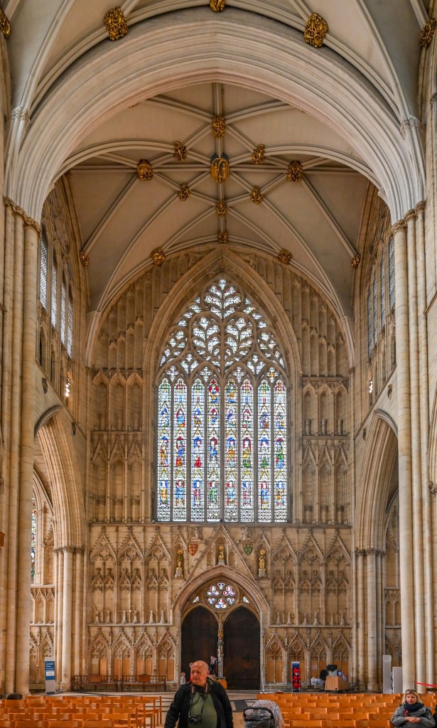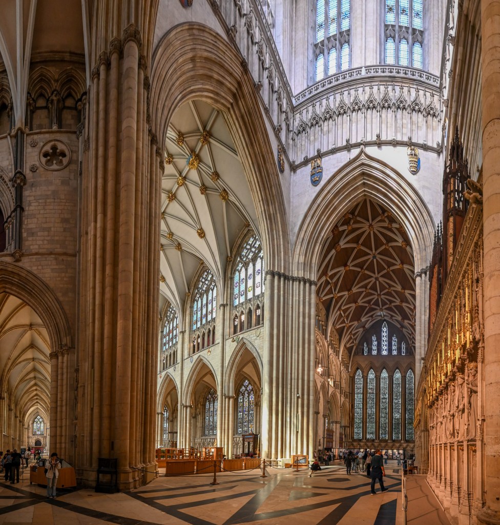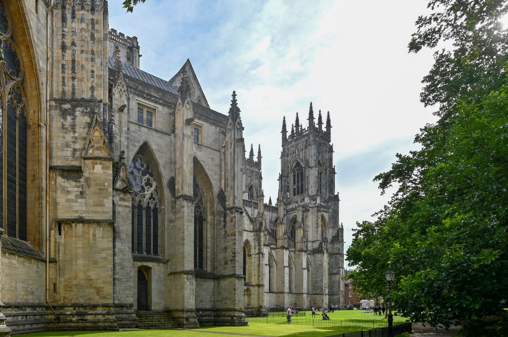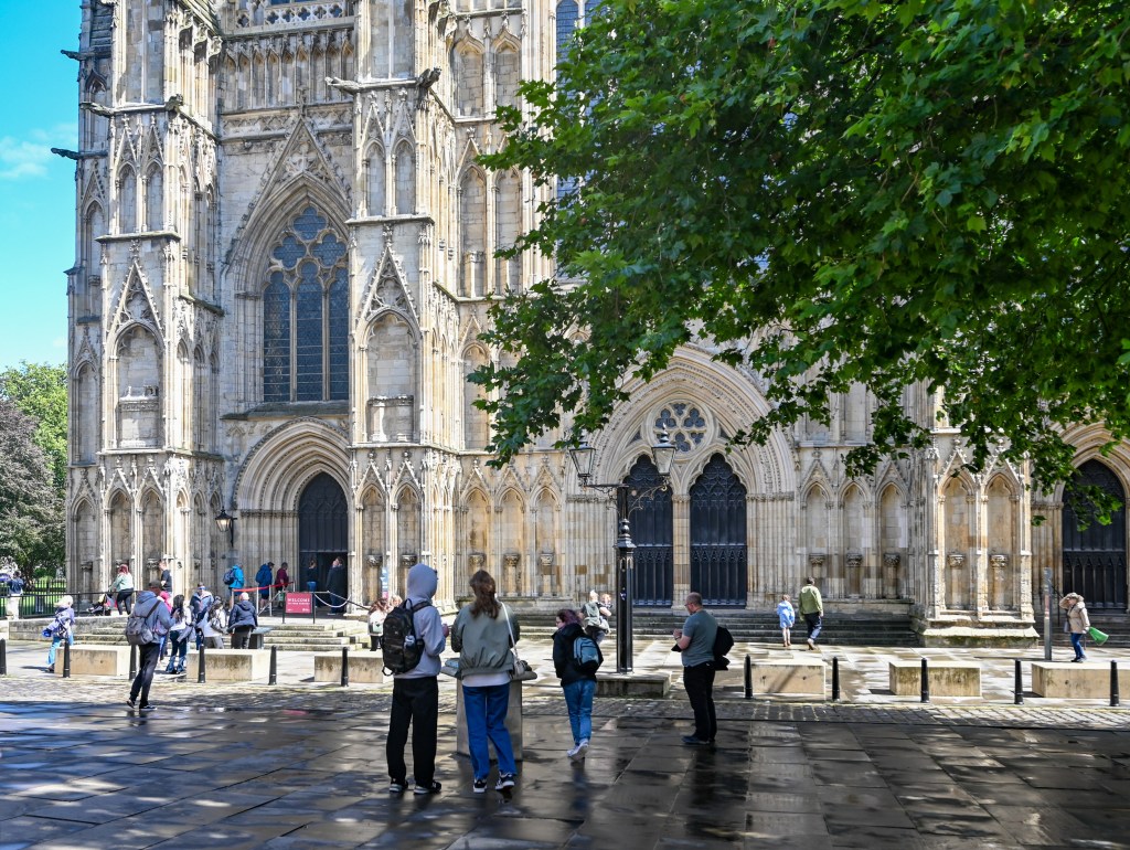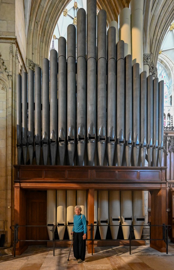 York is bekend vanwege de grote kathedraal, de York Minster, zetel van de aartsbisschop van York. Het is de op een na grootste kathedraal van Europa. Rijk versierd met houtsnijwerk en gebrandschilderde ramen. De kathedraal lijkt nog groter omdat de omringende bebouwing relatief laag is voor een stad van dit formaat. Ook binnen is alles groot en indrukwekkend: de hoge gewelven, de hoge ramen, de rijke versiering en het gigantische orgel. Nog nooit zulke grote orgelpijpen gezien. Het orgel wordt tijdens onze aanwezigheid jammergenoeg niet bespeeld. Als we later buiten lopen luiden wel de klokken. Wel een paar minuten achter elkaar produceren de klokken een onheilspellend gigantisch gegalm.