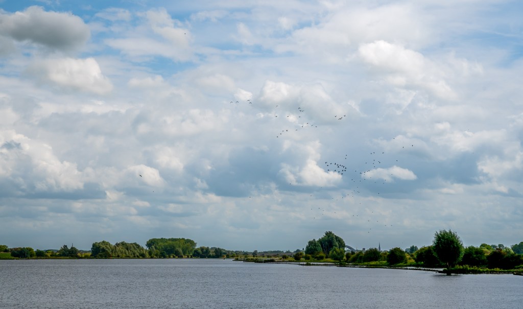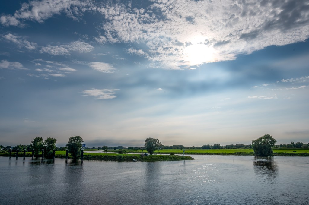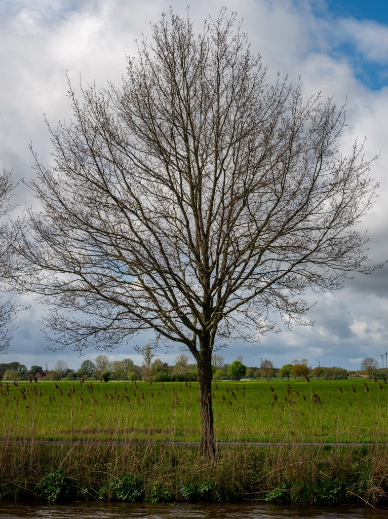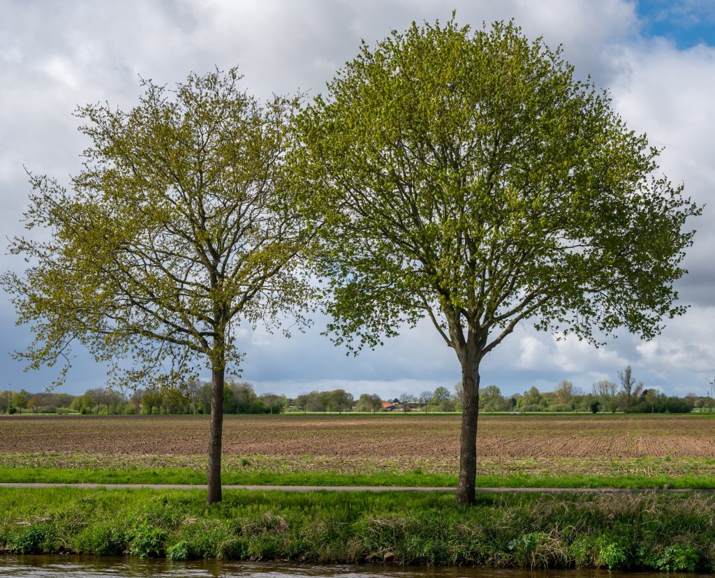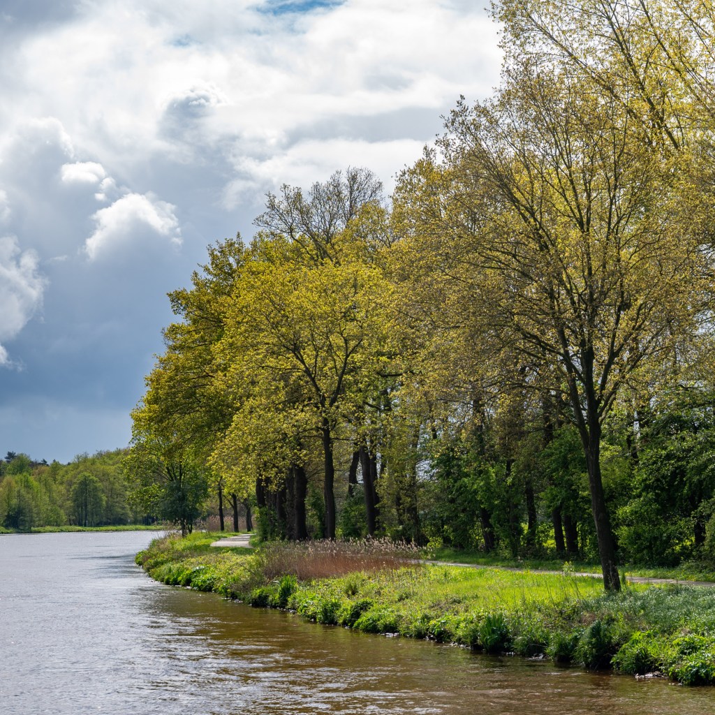 Bomen langs de Eems en licht op het Küstenkanaal