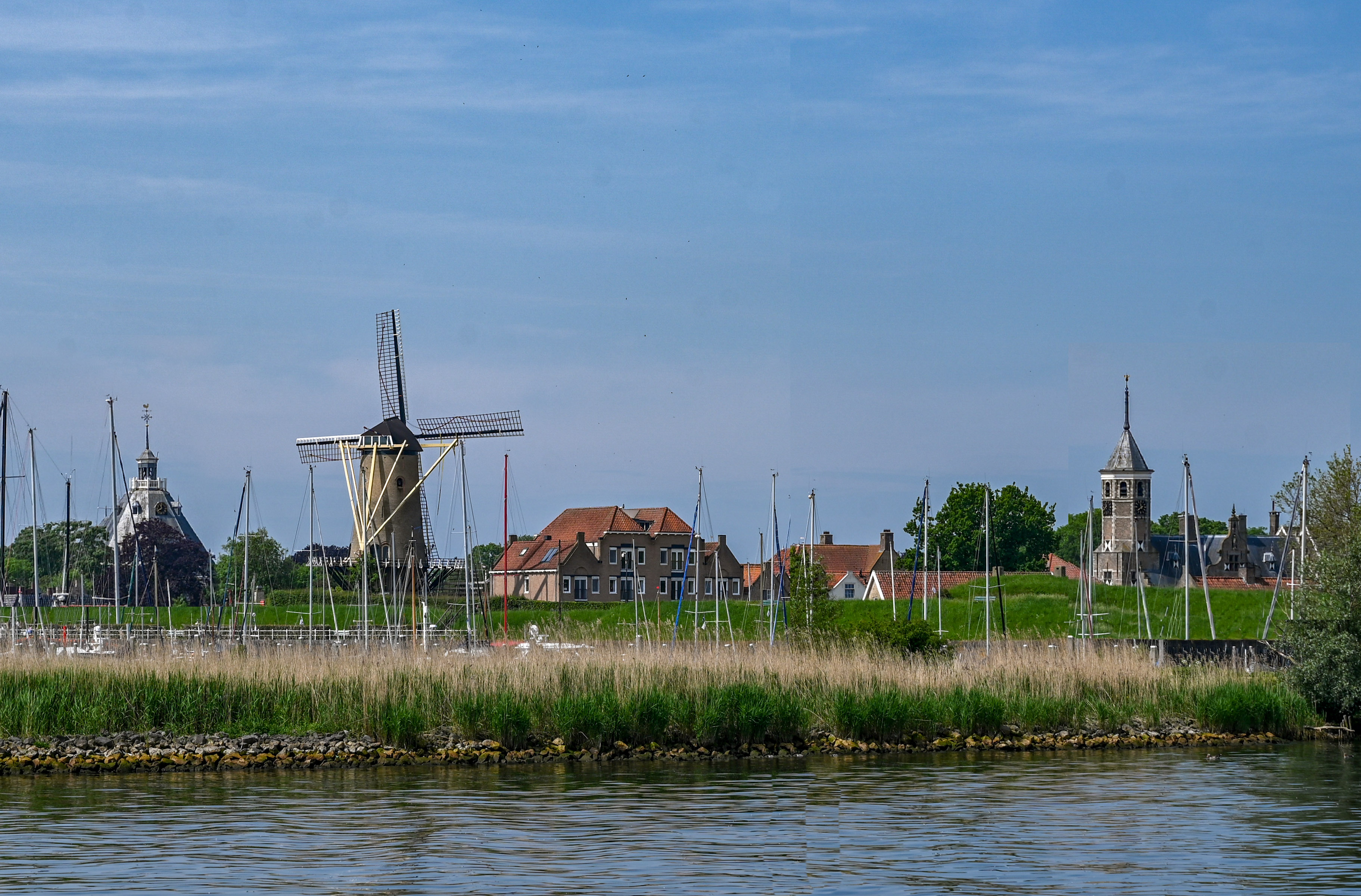 Zicht op Veere vanaf het eilandje Mosselplaat in het Veerse Meere