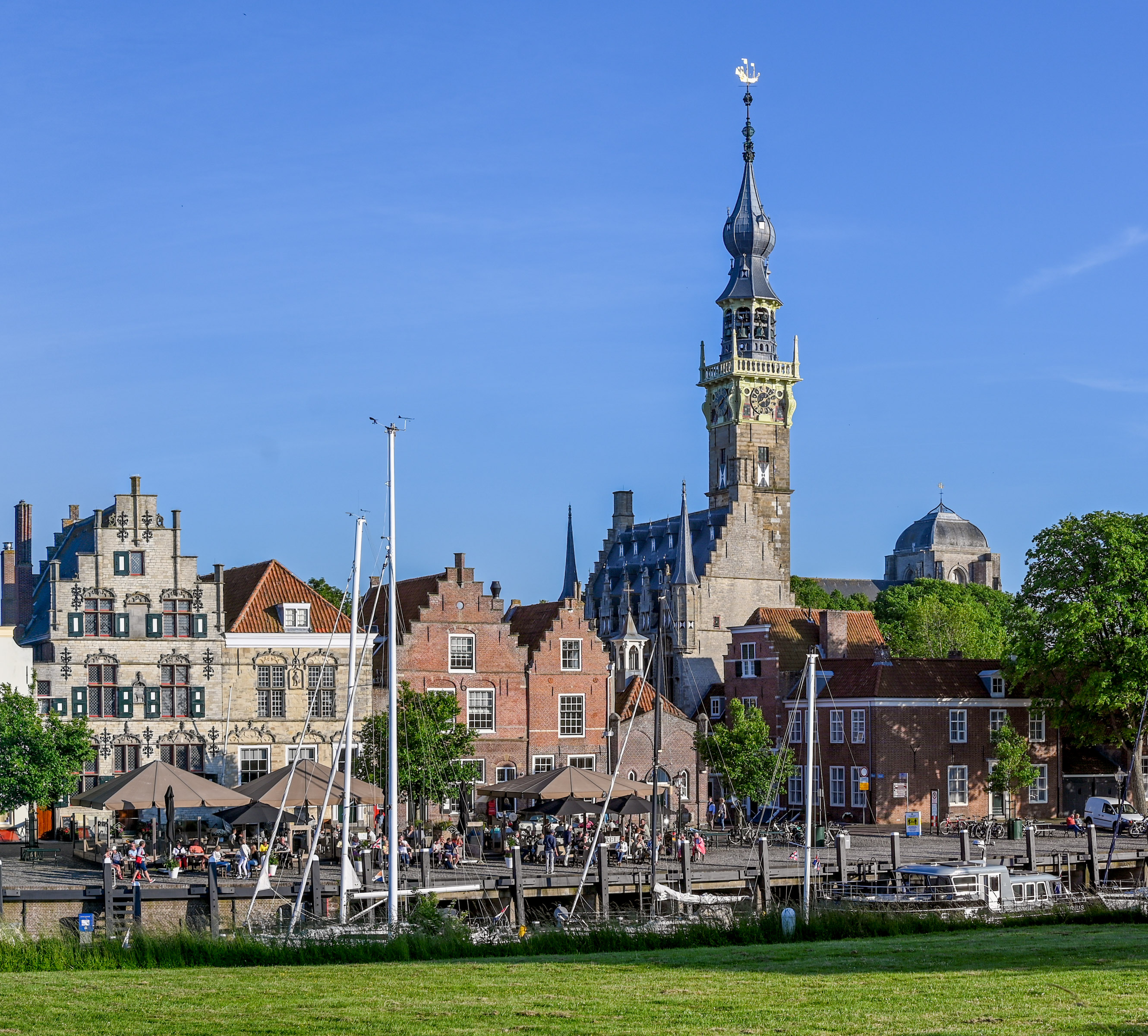 We liggen nu in Veere en dachten in dit prachtige stadje 4 dagen te blijven. Onze planning was morgen met de bus naar Middelburg te gaan waar Ria haar tweede prik kan ophalen. Bij nader inzien rijdt er in het weekend geen bus. Dus moet ik naar de havenmeester om de drie te veel betaalde dagen terug te vragen en gaan we met Tiberius over het kanaal door Walcheren naar Middelburg. We hebben gisteren toch nog even van het zonnige Veere kunnen genieten. We komen hier zeker nog eens terug.