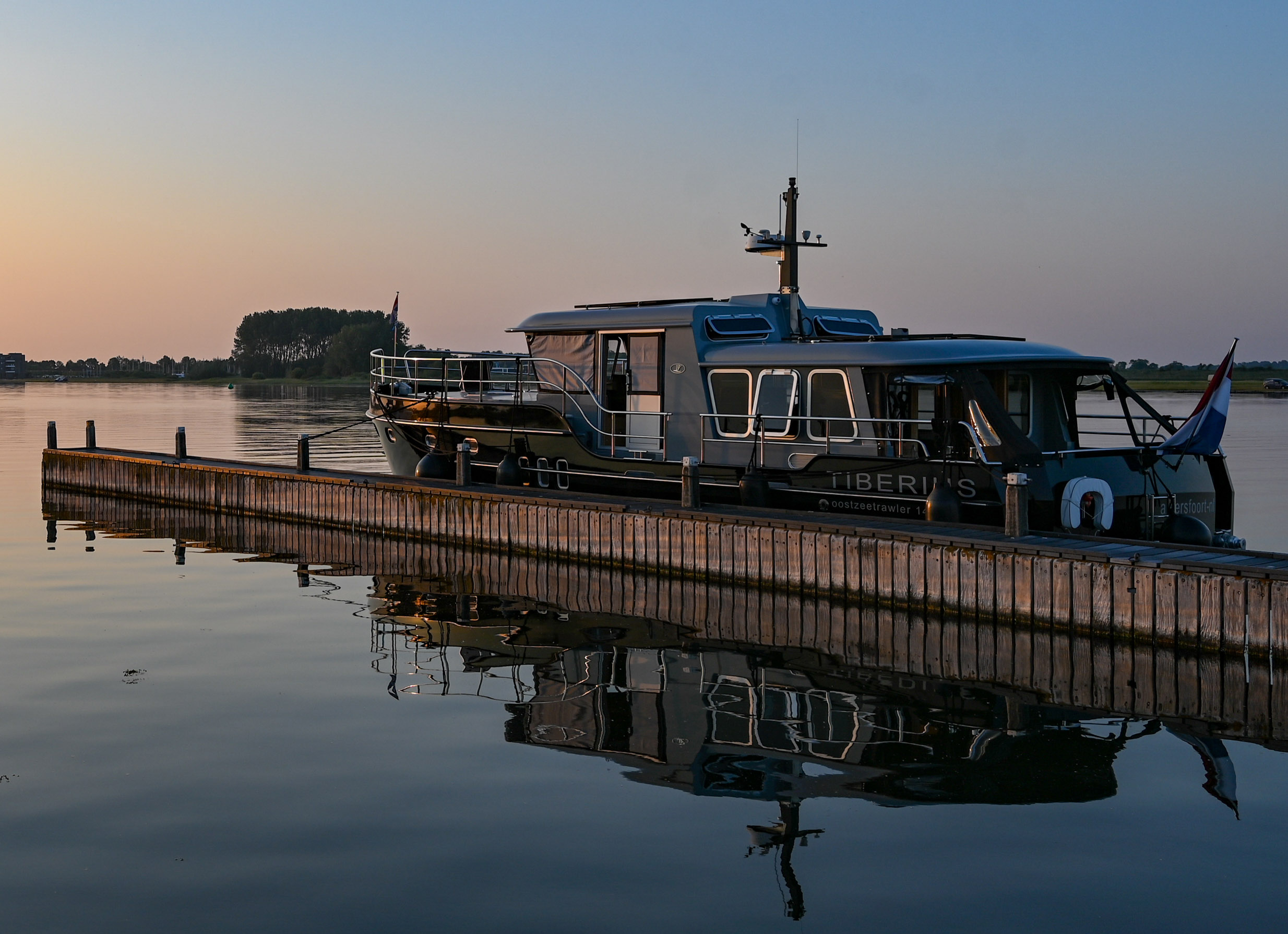 We eten ’s avonds heerlijk in het zonnetje bij restaurant ‘van Dijk’. Vanaf het terras zien we de Tiberius liggen. Wat een uitzicht, een feestje om Tiberius zo van een afstandje te bekijken!