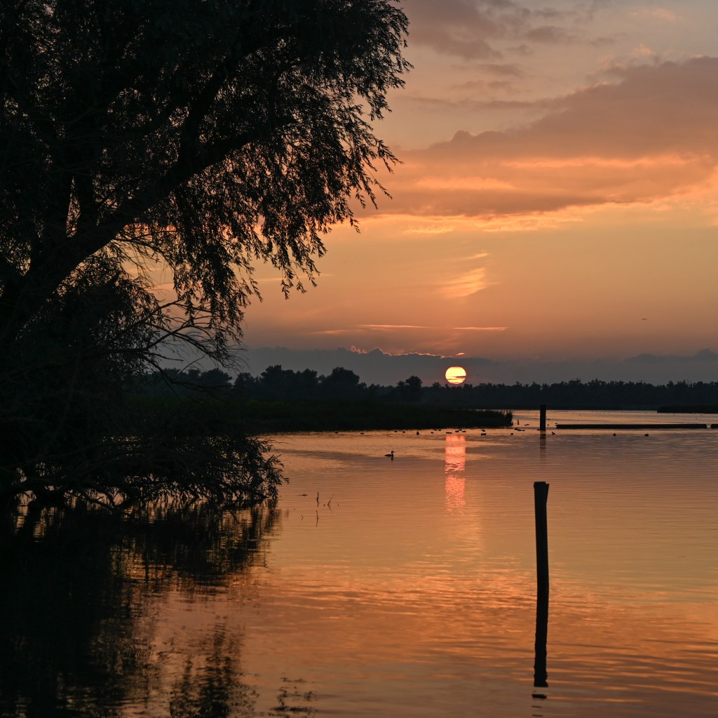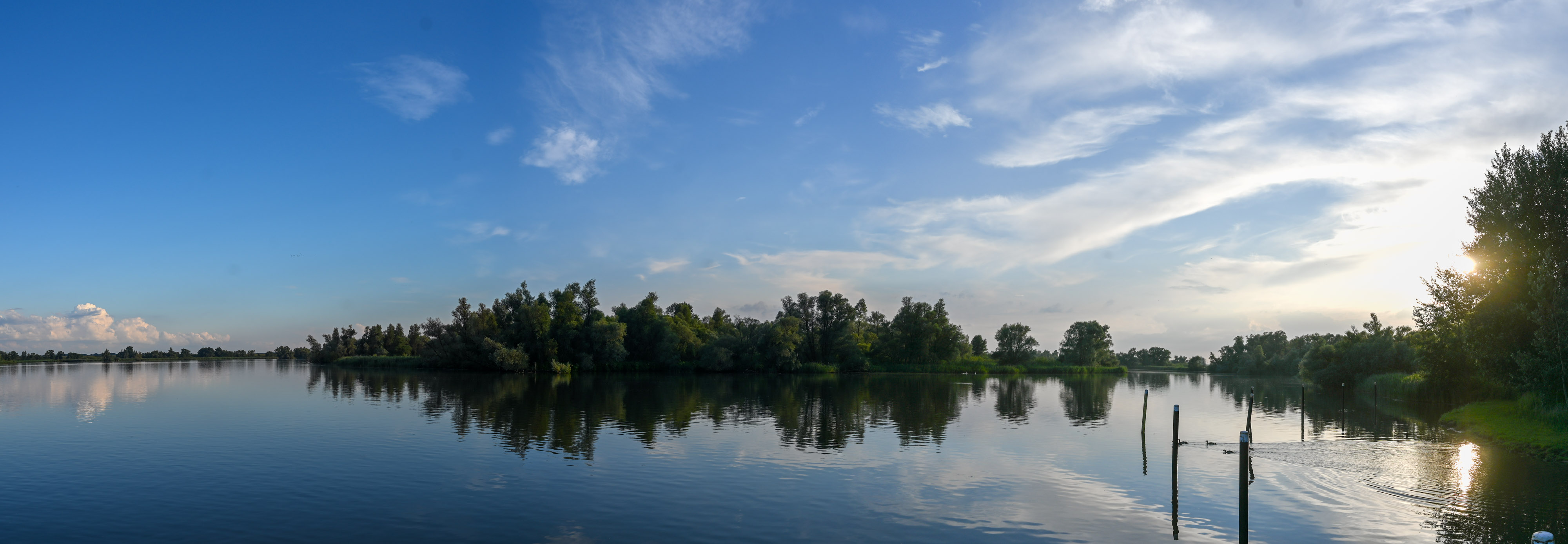 De foto’s die Aad in de avond maakt laten een verstild landschap zien met de ondergaande zon boven een grote vogelplas. Jammer van die aan een stuk door kakelende vrouwen naast ons. De dames praten vanuit de kuip van hun twee boten. Op het water klinkt alles zo hard en we zijn natuurlijk niets meer gewend. We kunnen onze draai niet vinden; waar hebben die vrouwen het toch urenlang over?