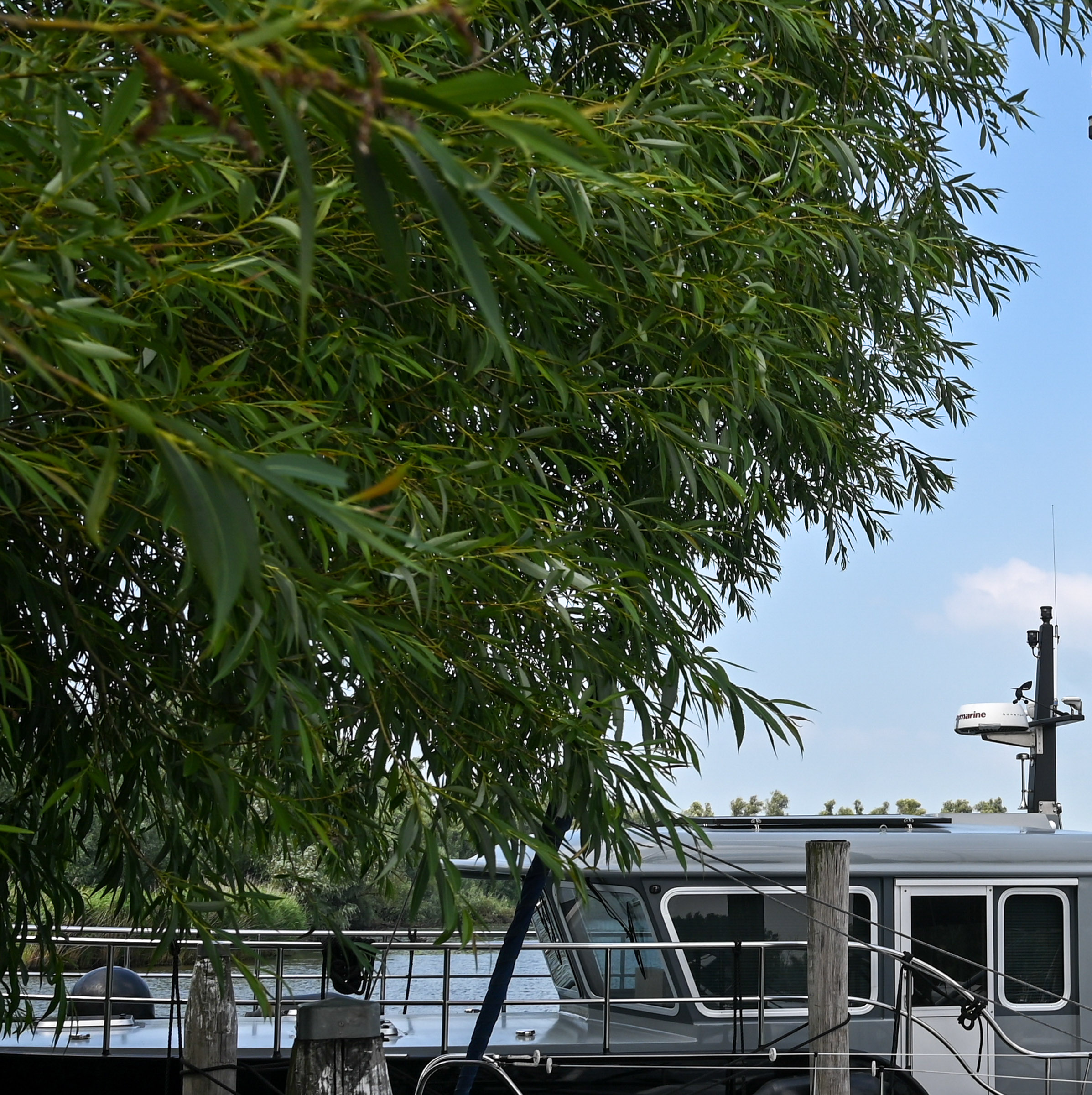 Na een paar heerlijke weken in Dordrecht, was het vorige week ook fijn om naar buiten te gaan en in de natuur te kunnen liggen. We passeren twee sluisjes aan weerszijde van de Nieuwe Merwede en varen zomaar de prachtige Biesbosch binnen. We meren af aan een paar palen die op vijf meter afstand van de kant van een eilandje staan en zijn de enige boot. Af en toe meert er een bootje van Rijkswaterstaat aan om wat materieel te brengen of op te halen. Het geeft direct een eilandgevoel en je waant je een beetje in Scandinavië. Nou ja, een klein beetje dan.