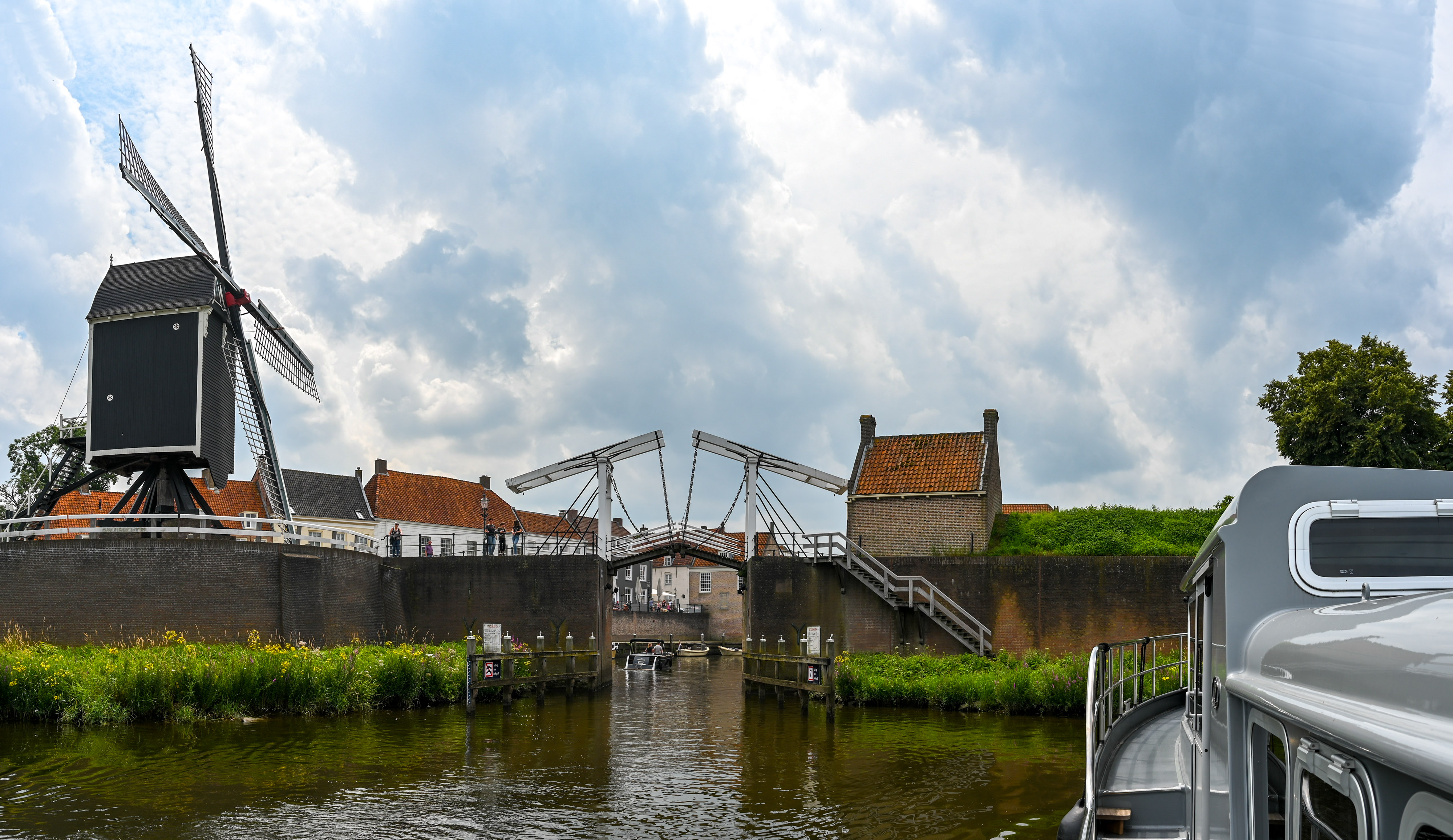We leggen aan op een mooi kops kantje, met een prachtig uitzicht op de twee molens en het witte klapbruggetje. Wat is Heusden een snoepje van een stad. Helemaal gerestaureerd, Heusden lijkt wel een groot openluchtmuseum. Met zoveel liefde is het vestingstadje in oude staat teruggebracht. Jammer van de vele auto’s en terrassen in de stad.