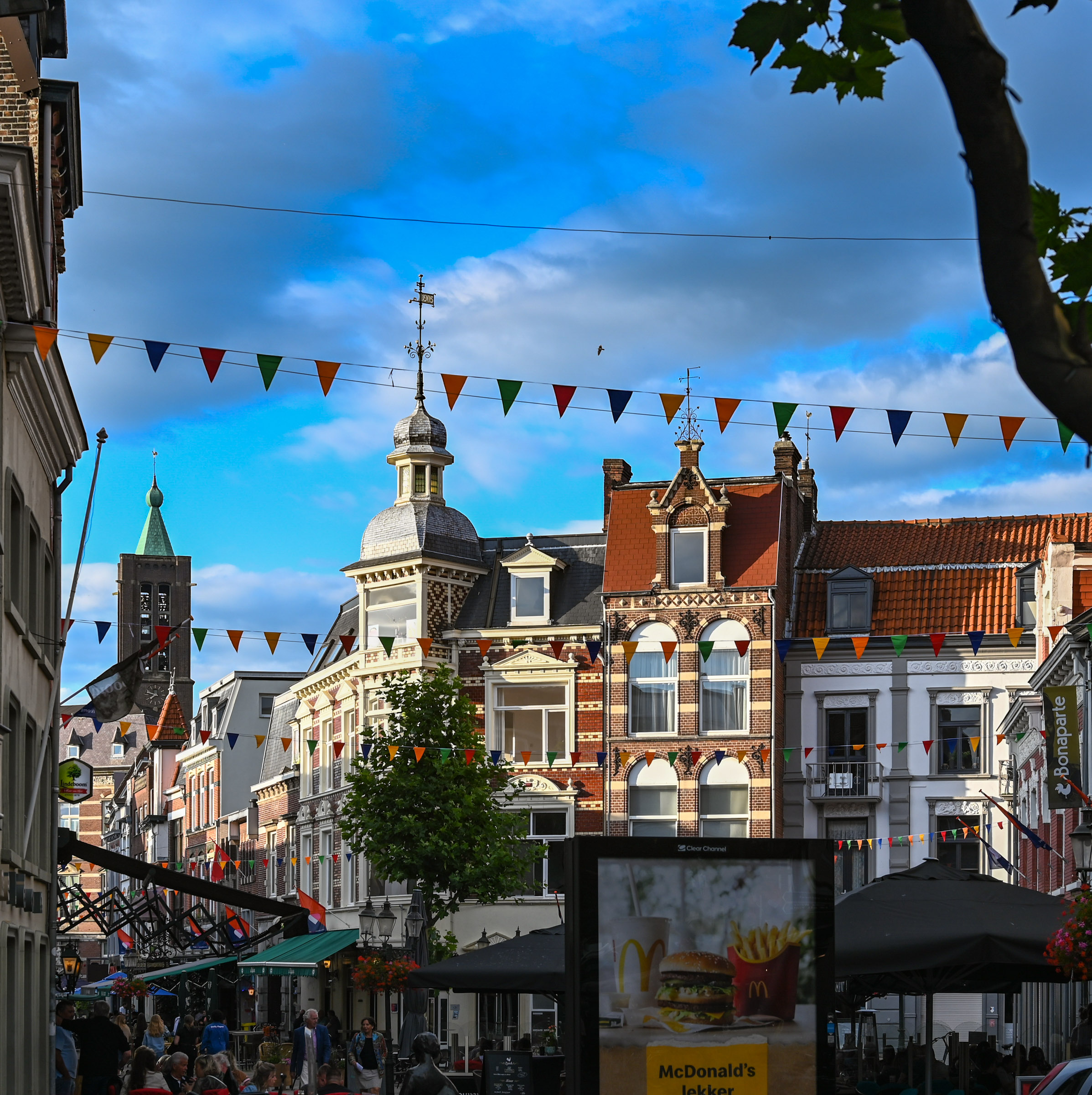Uiteindelijk kies ik voor een meer stadser plaatje met meer ruimte: de Markt. Daar kun je ook beter de typische Maastrichtse architectuur rond het plein zien.