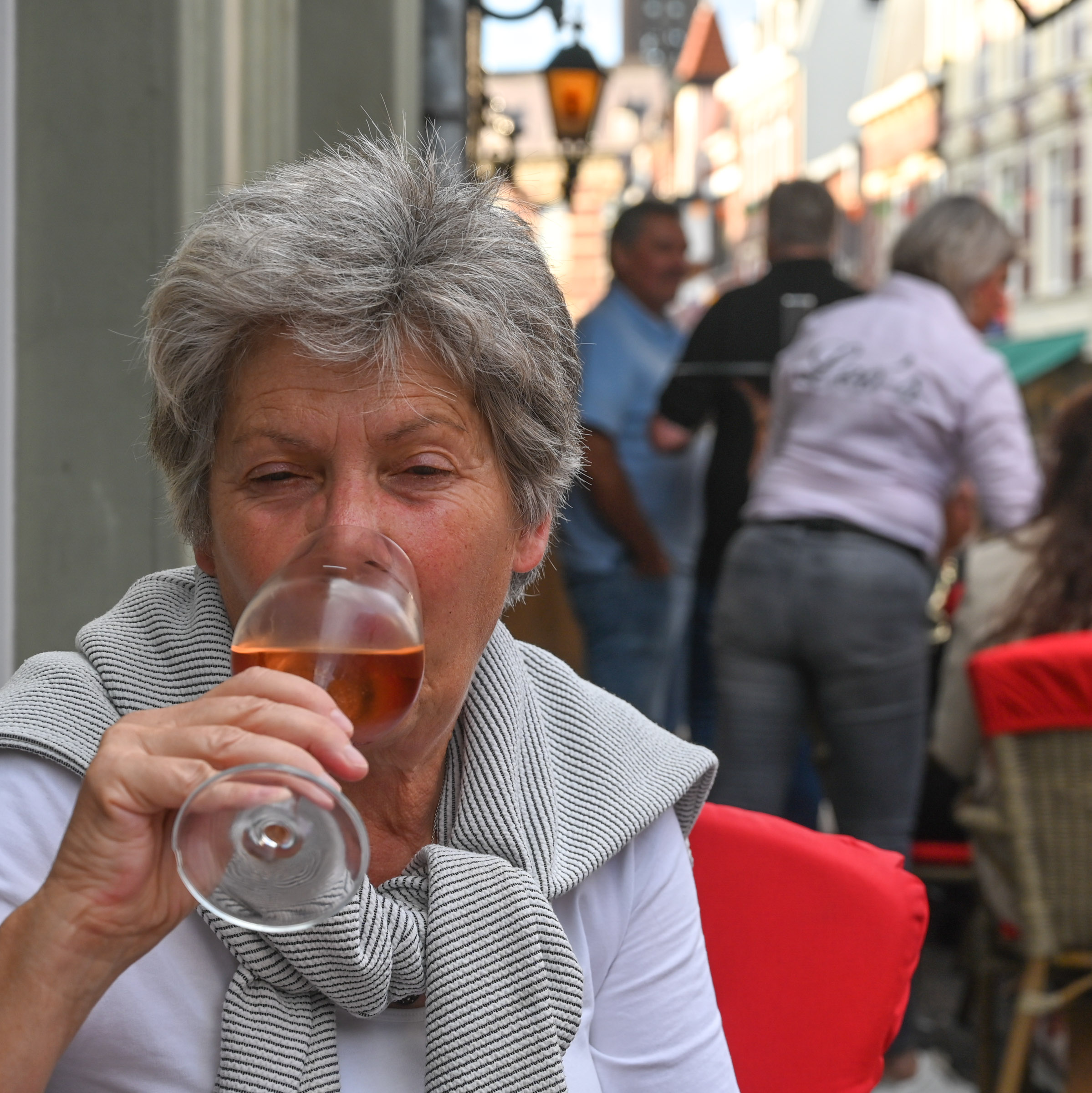 De binnenstad van Venlo is erg gezellig en daarom drinken we ’s avonds iets in een gezellige Venlose kroeg aan de Parade. Ria een rosé en ik een Venlo’s witbiertje.