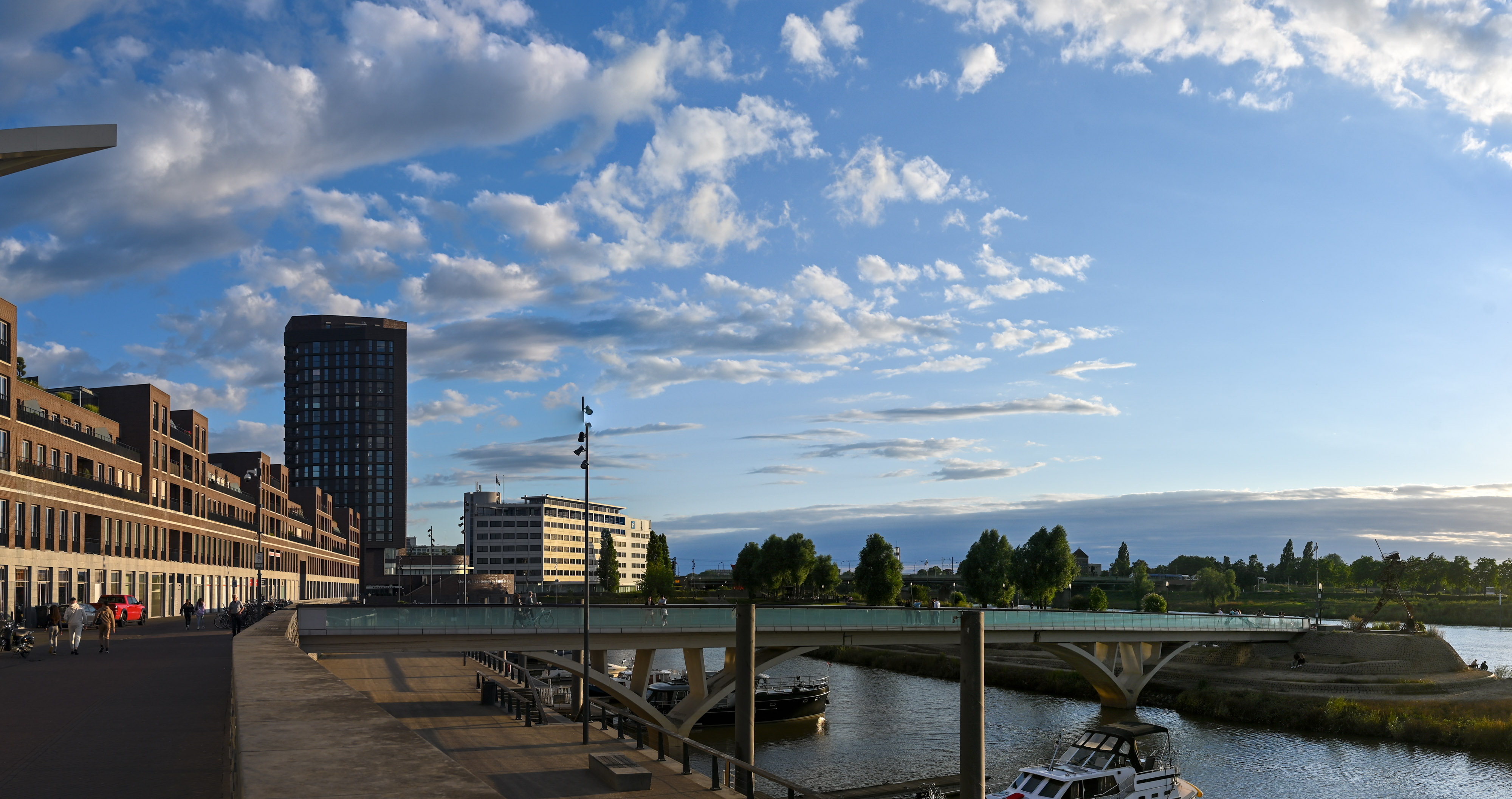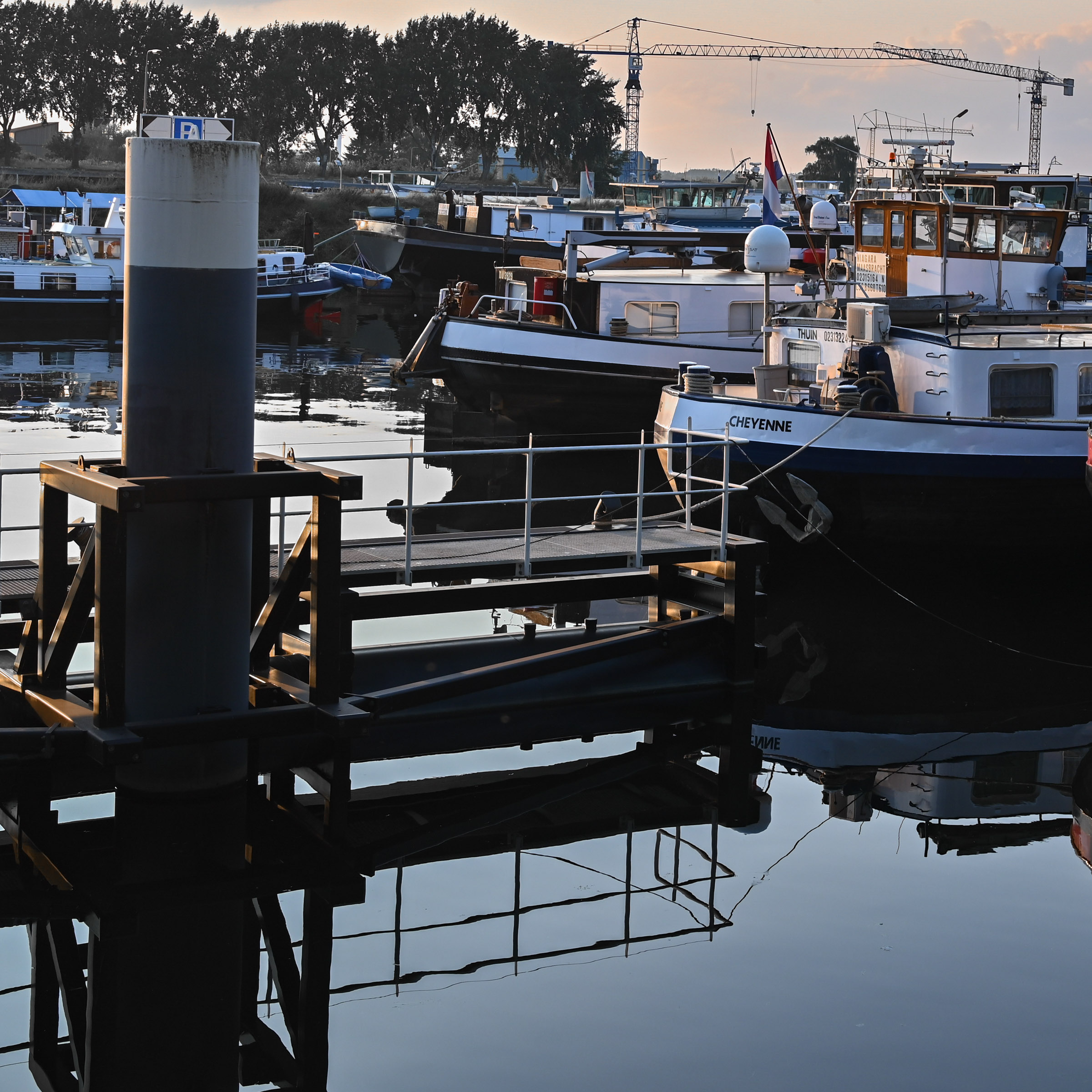 Ook hier in ’s Hertogenbosch, waar we sinds maandag liggen, wordt er rekening gehouden met het meer openzetten van de sluizen op de Dommel. Vanmorgen kwam de havenmeester bij alle boten langs. De verwachting is dat het vaste steiger in de jachthaven zeker een meter onder water komt te liggen. Dus, verhuizen is de enige optie. Onder de vaste Boombrug door, nu het nog kan. Dit is een beter plekje wanneer het water stijgt. Hier is een drijvend steiger.