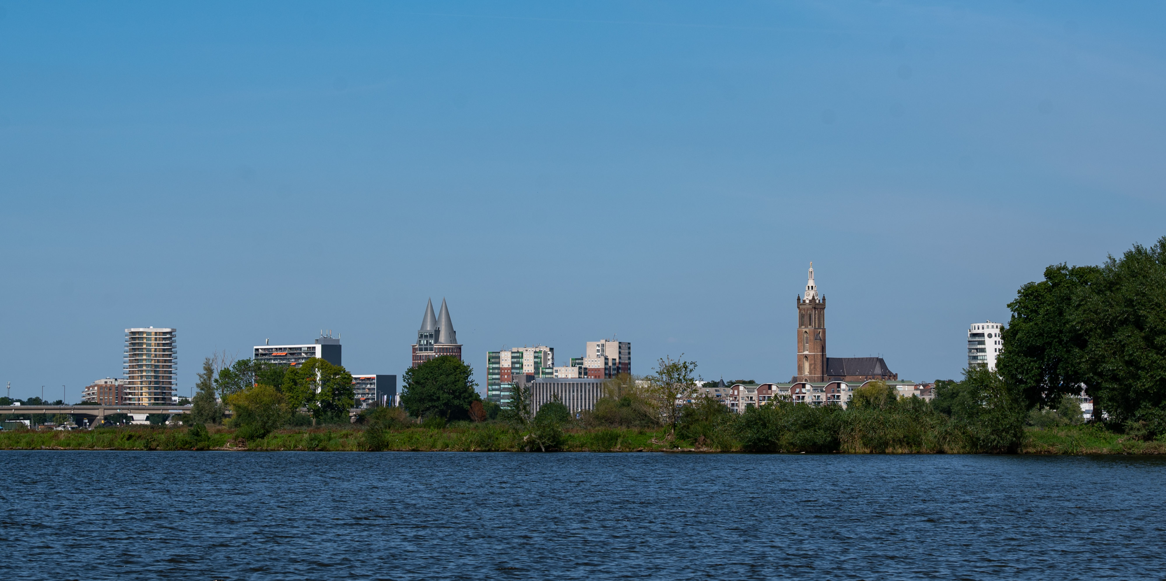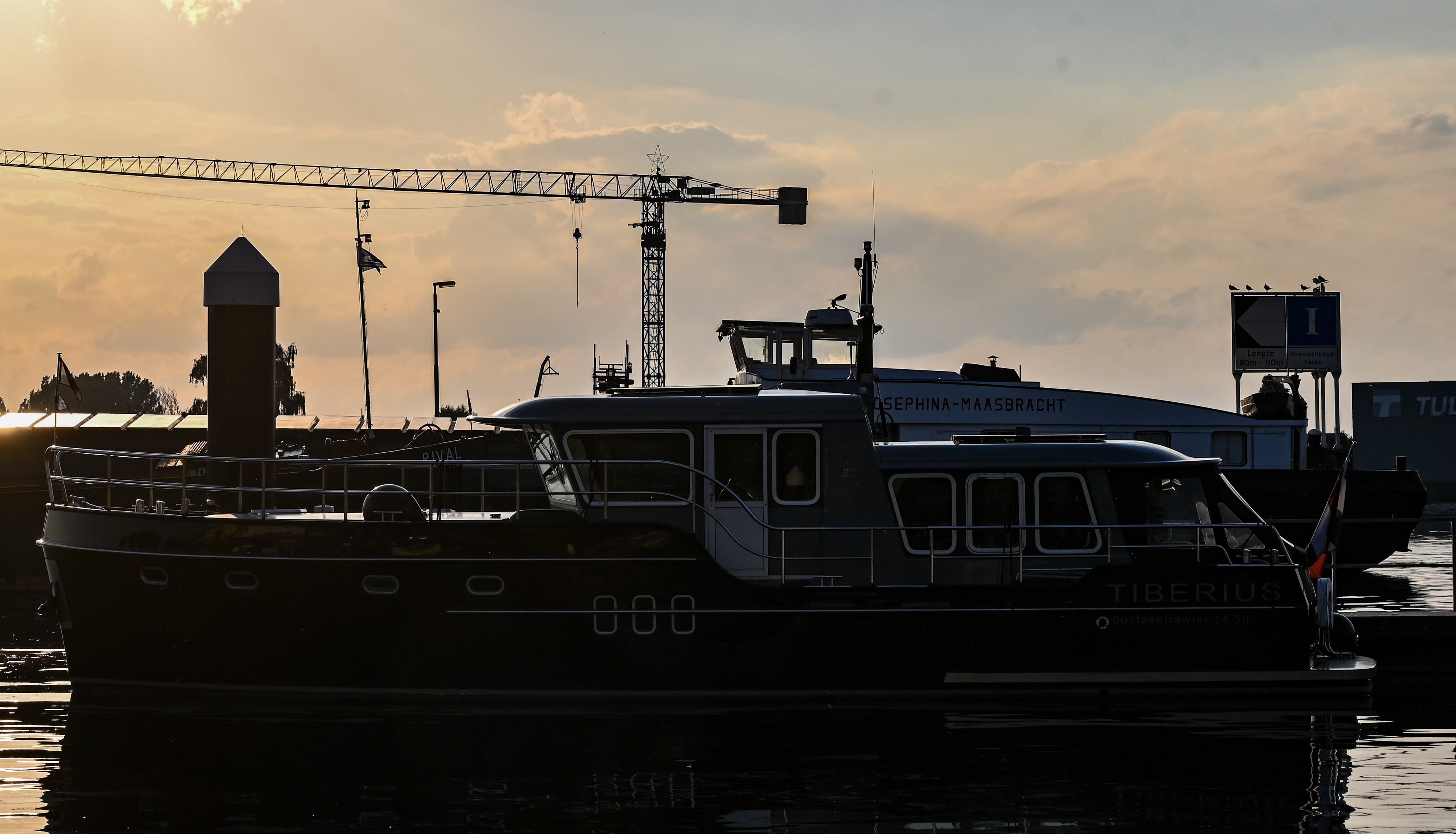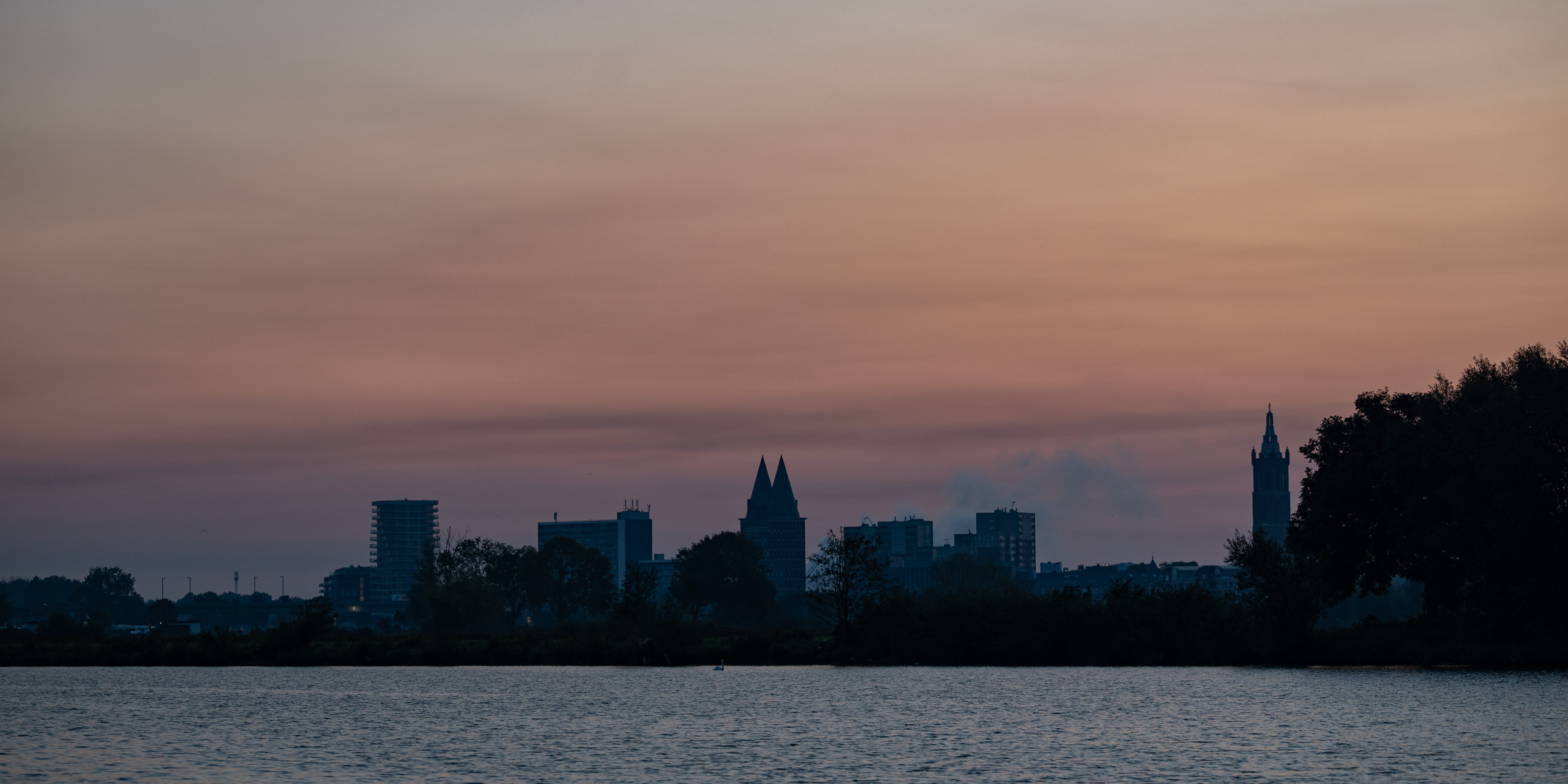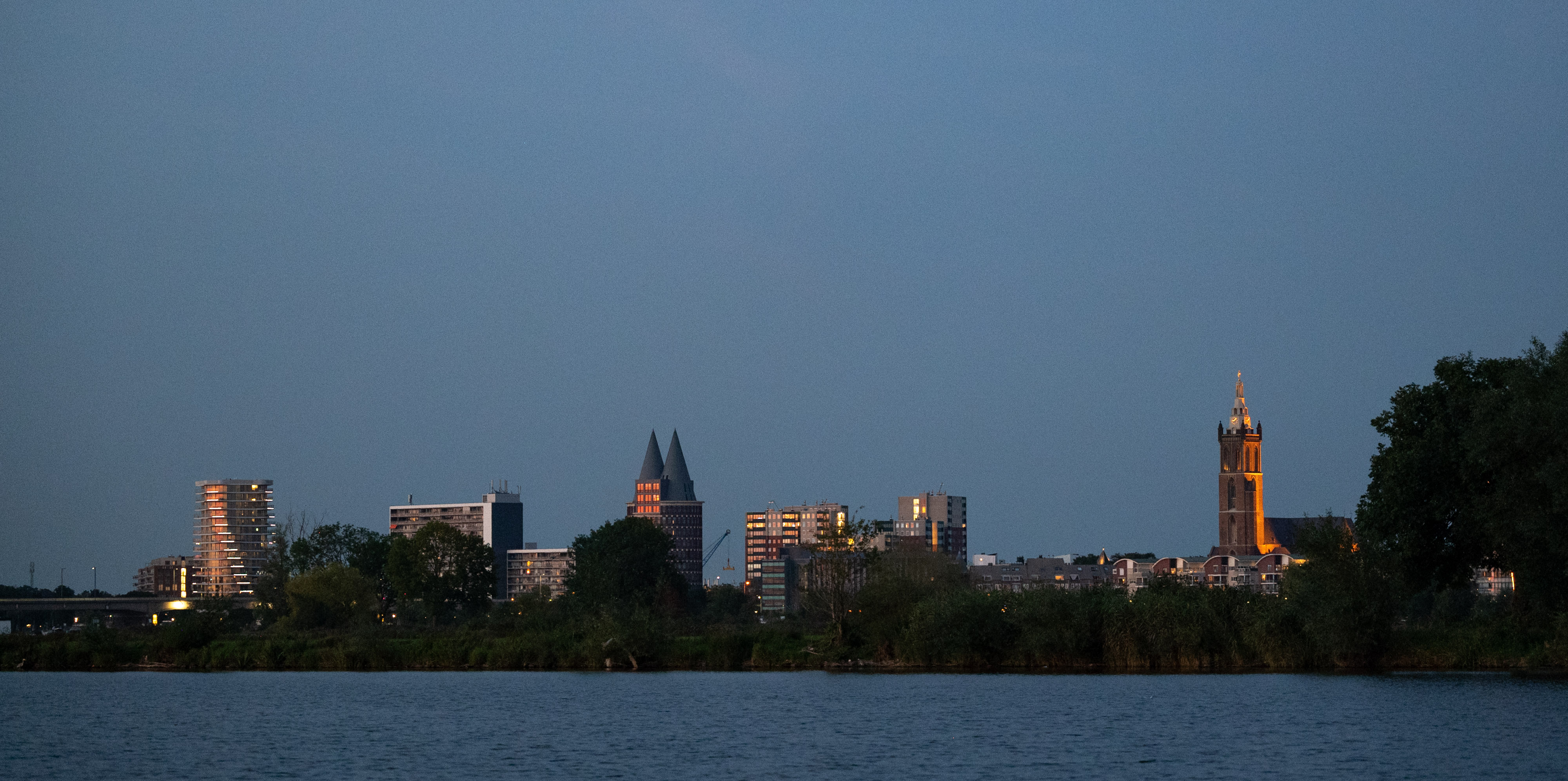 Om ons verblijf toch nog enigzins te documenteren heb ik regelmatig ons uitzicht vanuit de kuip gefotografeerd wat resulteerde in bijgaande van de vroege morgen tot de late avond gefotografeerde stads-silhouetten van Roermond.