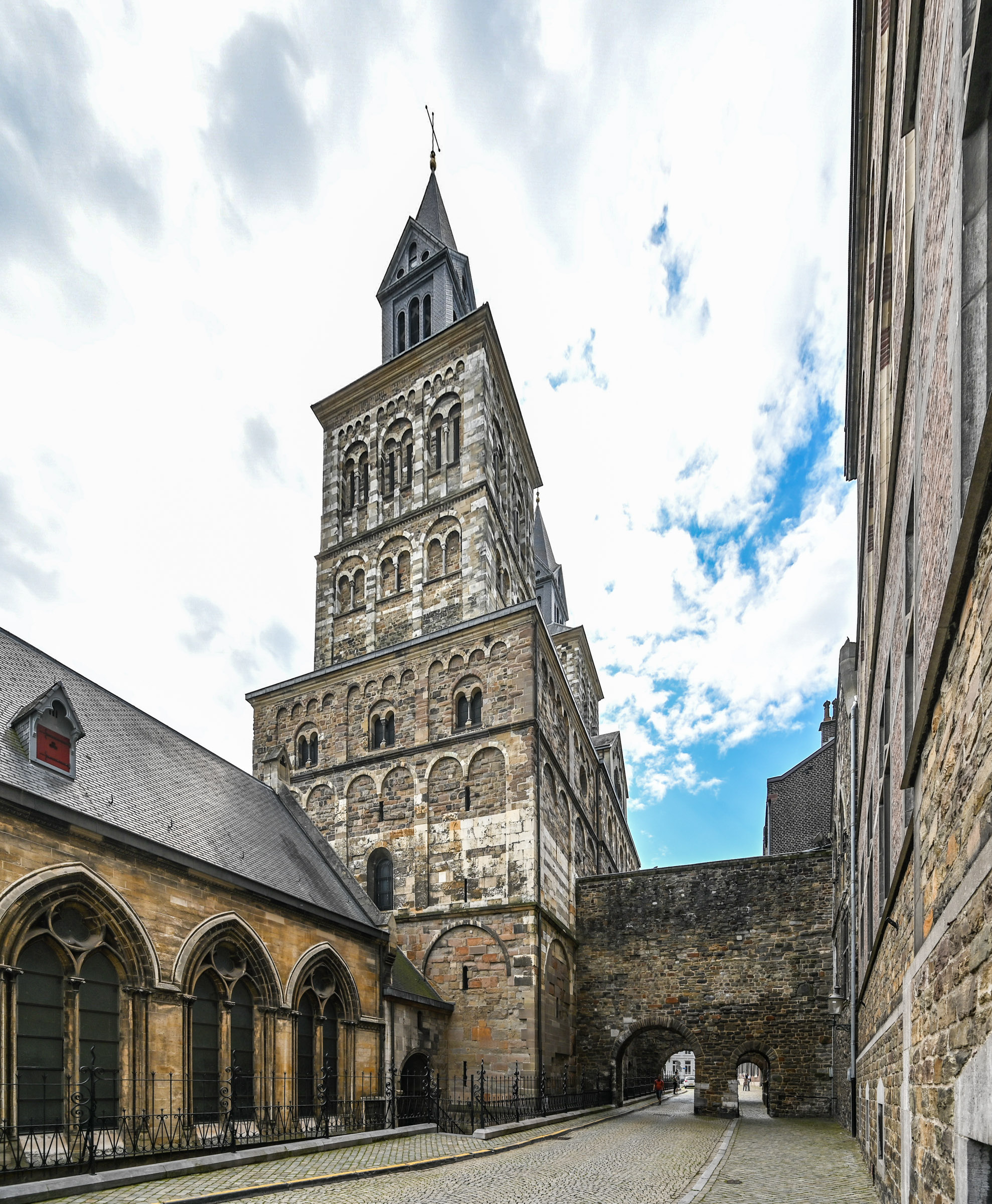 Een deel van de middeleeuwse muren en de machtige St. Servaas Basiliek.