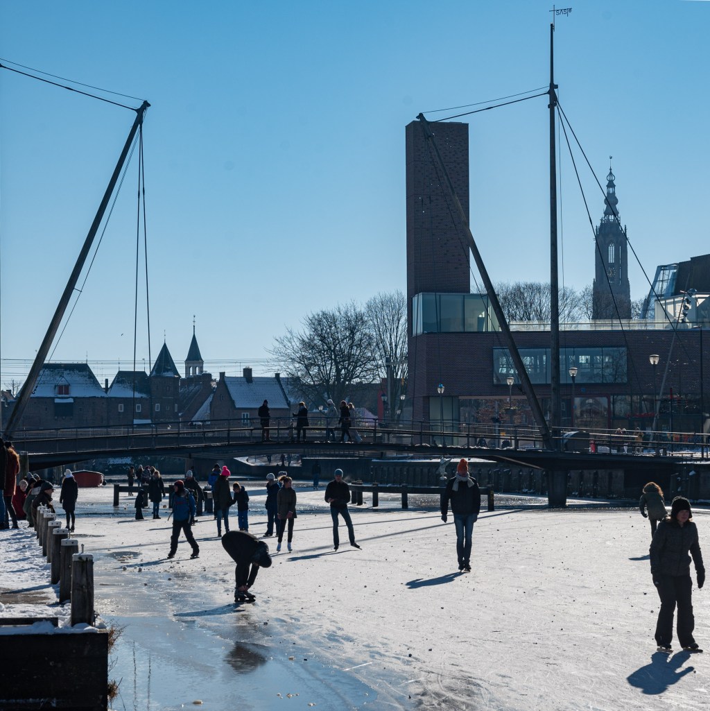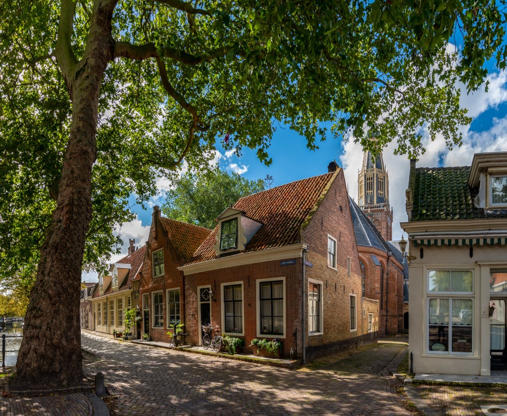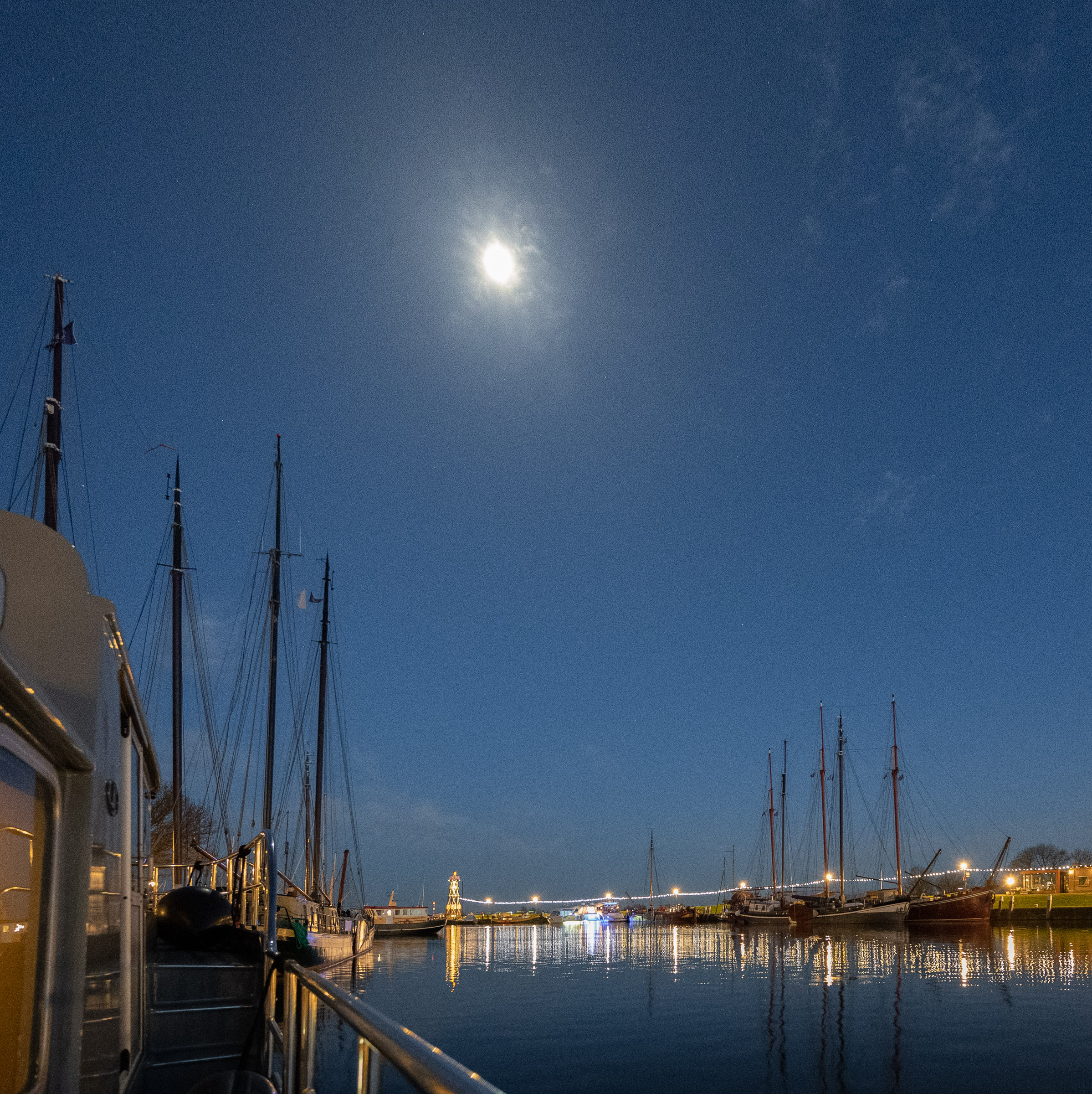 En natuurlijk leuk om Leiden weer opnieuw te ontdekken. Ik maak een tekening van het havenkantoor en avond-foto’s van de stad. De voorlaatste avond in Leiden nodigen we Frank en Ineke uit, die vlak bij langs de Zoeterwoudsesingel wonen. Ook met hen hebben we, onder het genot van een drankje, heel wat bij te praten.