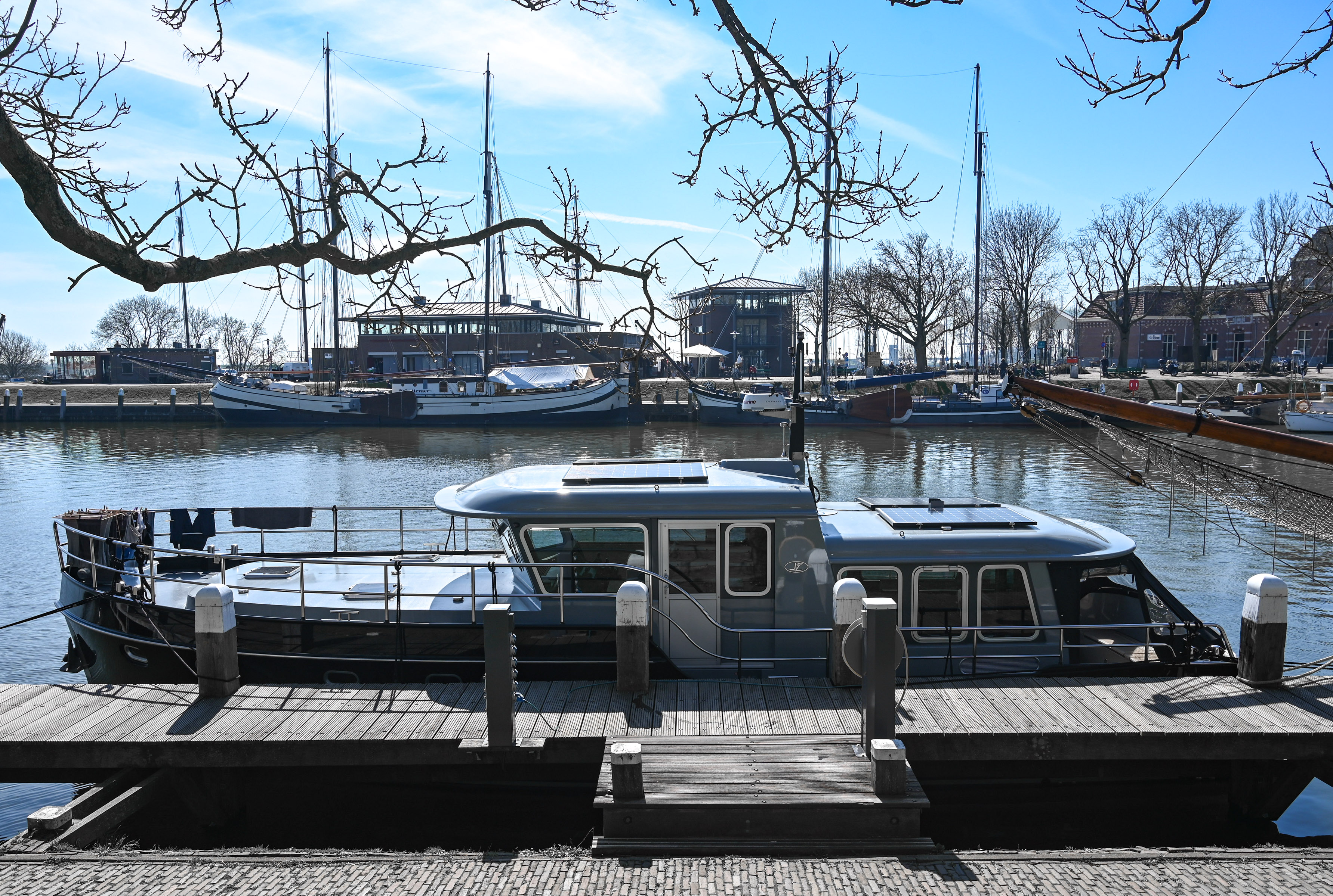 Dicht bij deze haven staat een Greenwheels deelauto waarmee we vrijdag naar Amersfoort moeten omdat Ria haar kiespijn maar niet over gaat. In Lisse zijn alle tandartsen gesloten of zij willen niet helpen. Slechte zaak! Ik ga vrijdagochtend de deelauto halen. Ria wacht bij de entree van de jachthaven op mij. De auto wil echter niet open. Nadat ik Greenwheels heb gebeld, kwam ik er achter dat de accu leeg was. Dubbele pech. Wat nu, een Greenwheels in Nieuw Vennep pakken? Geen goede optie want de tijd dringt. Dan maar een taxi gebeld. Een aardige schauffeur brengt ons in rap tempo en veilig naar Amersfoort. De assistente en de tandarts wachten dan al een half uur op ons. Dat is pas service! Gelukkig neemt Ria haar kiespijn na de behandeling af.