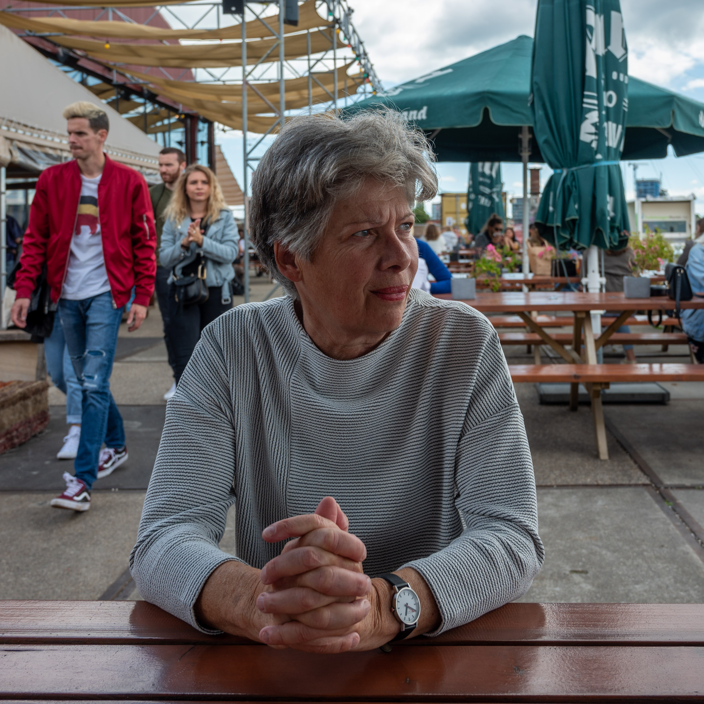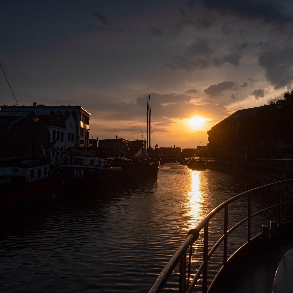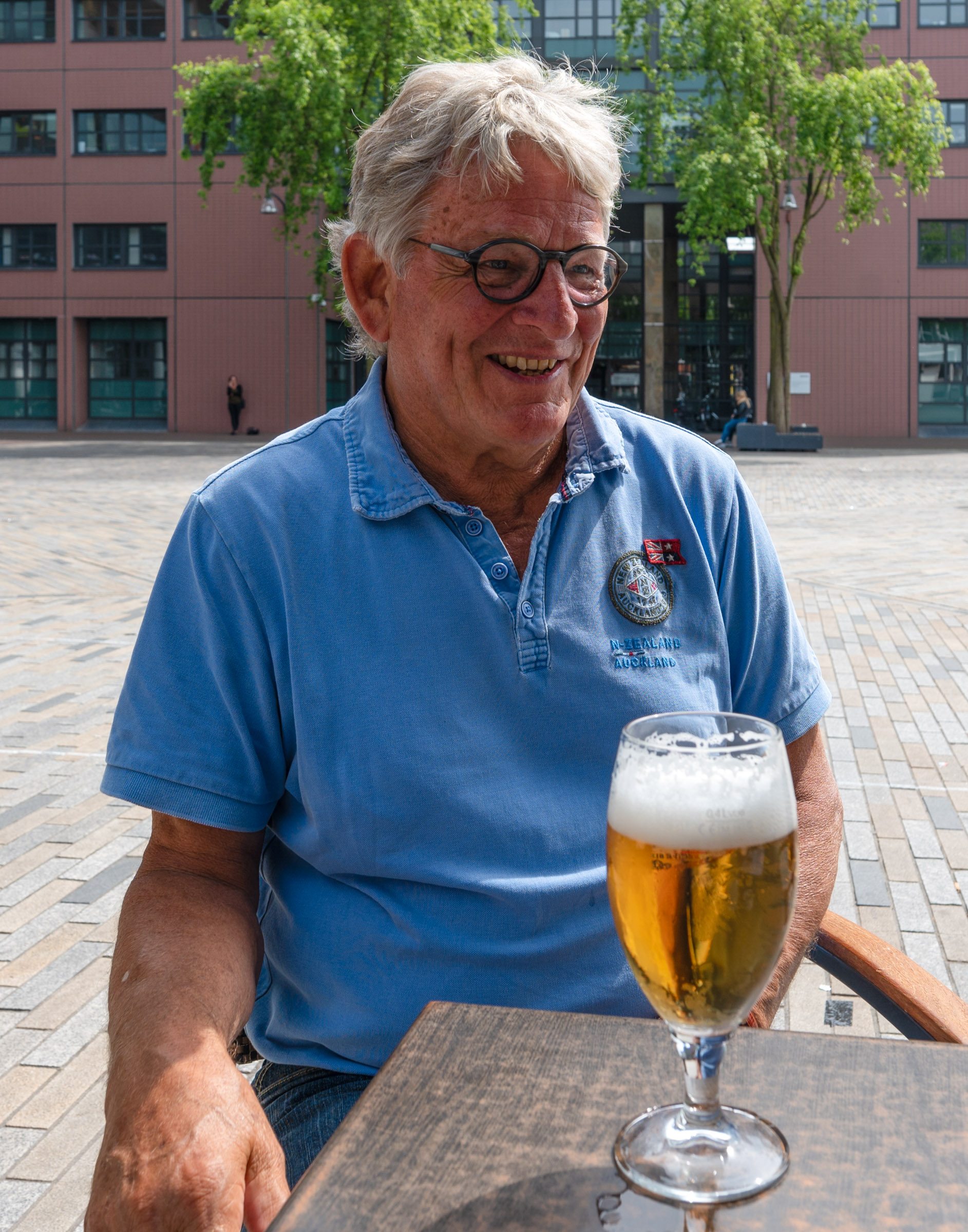We lagen aan een laag steiger in de Brede Haven. Met naast ons een hoge kademuur, zoals je die door heel ’s Hertogenbosch ziet. Met een heel steile trap van 4 meter hoog naar boven. Ik ben er een keer op geklommen, op mijn achterwerk. Terug achterstevoren er weer af. De volgende dag was het weer extra waardeloos met mijn knieën. Dit is niks, dit moet anders. We vroegen de havenmeester of er misschien ook een plekje met een helling was. Ja, aan de andere kant van de brug had hij wel een extra brede box voor ons. Dat zou moeten passen. We kleedden ons snel aan voordat het plekje weer weg zou zijn…. Aad haalde de lijnen en stootwillen aan de voorzijde al weg, zodat ik mijn knieën kon ontlasten. En ik ging achter in de kuip kijken. We moesten achteruit onder de brug door. Het was nl. zo smal dat we niet konden keren. Zo ontzettend knap van Aad dat hij met de boot achteruit kan varen, bijna zoals hij ook met een auto rijdt.