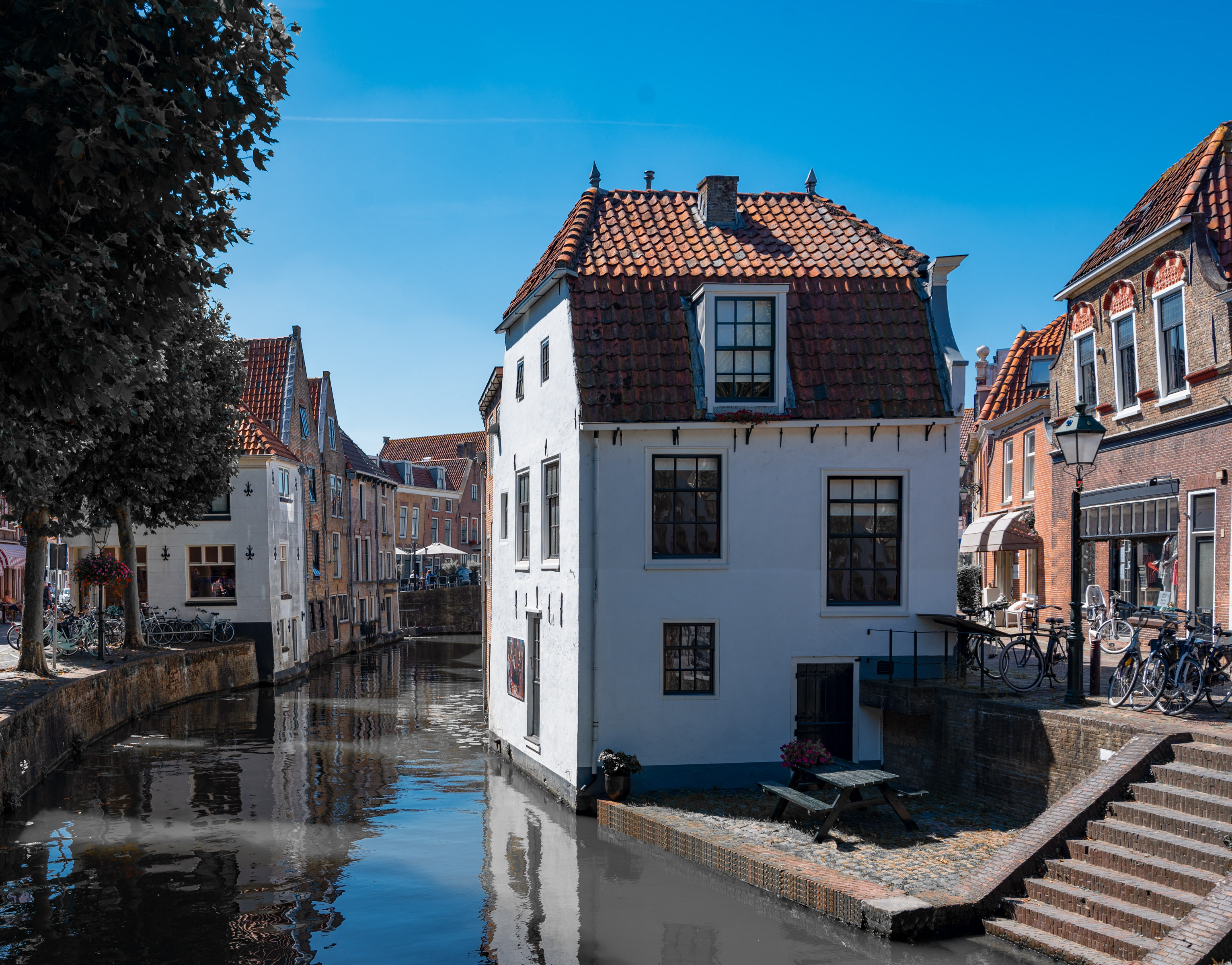 Het kleine riviertje de Dieze stroomt dwars door ’s Hertogenbosch, tussen de straten en vaak ook er onderdoor. Je waant je soms in een Anton Pieck schilderijtje. Heel lieflijk.