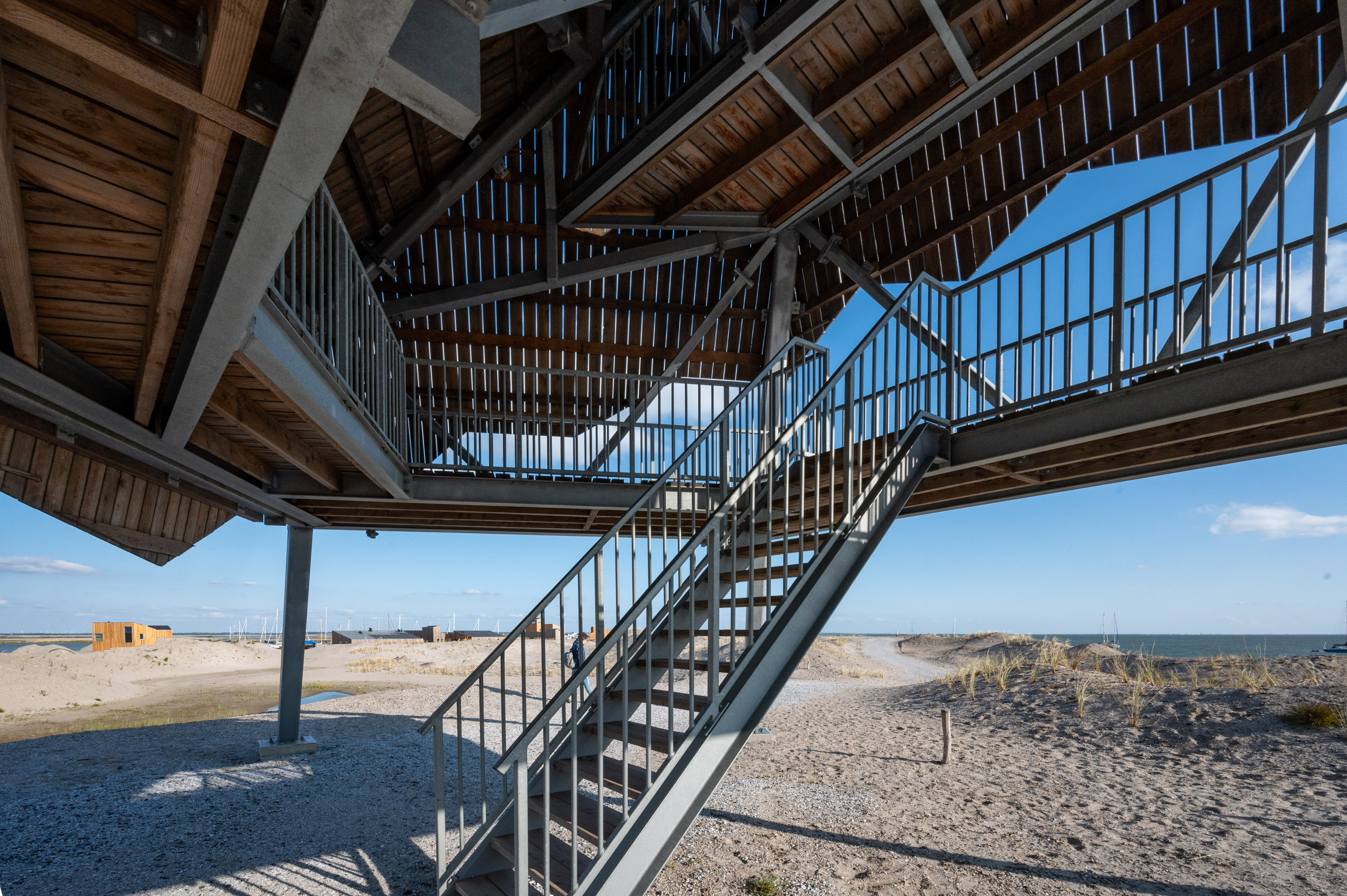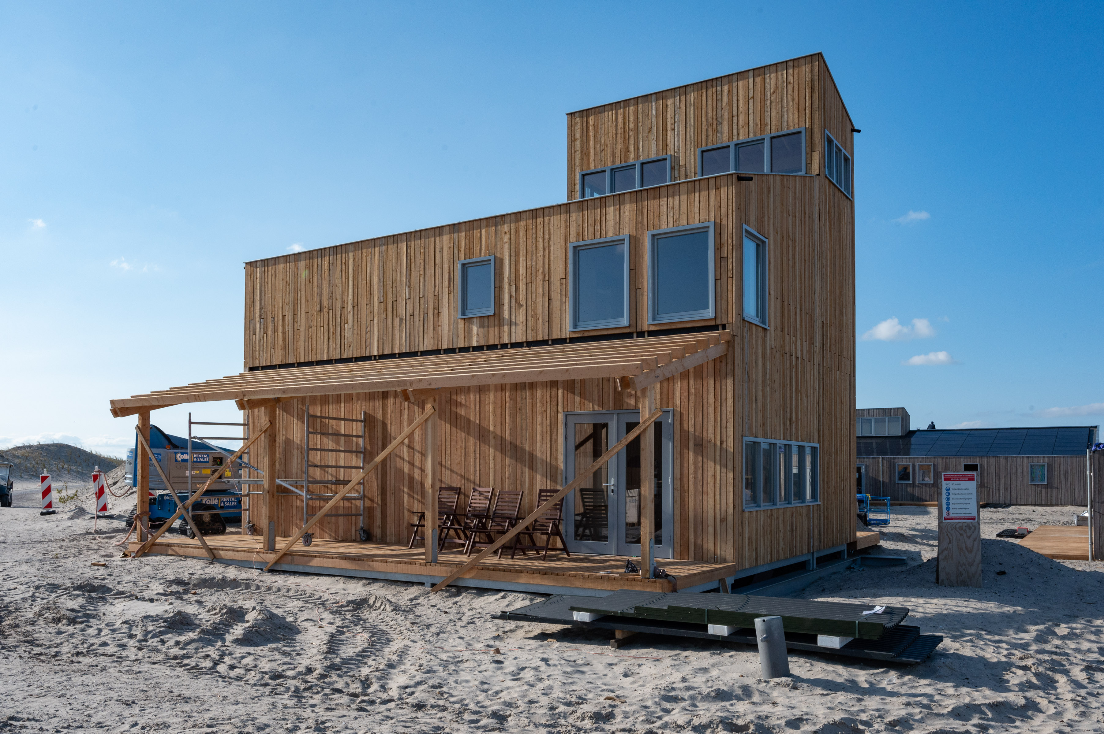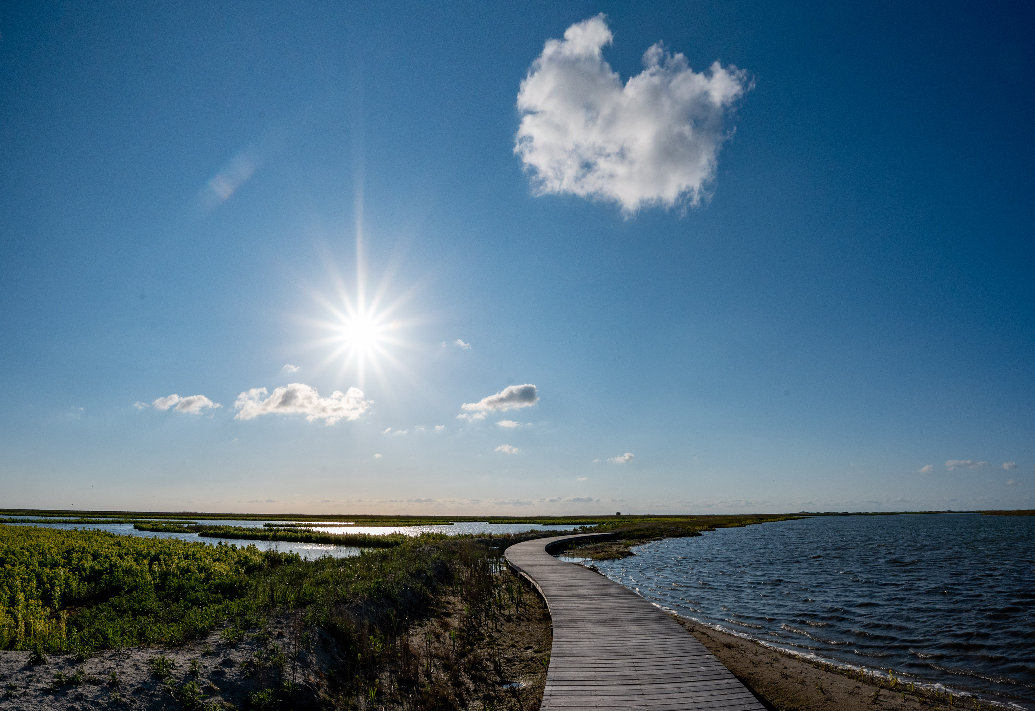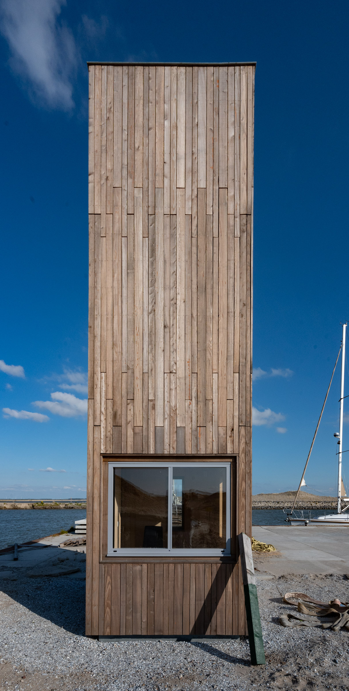 De Marker Wadden zijn mooi. Nog maar zo jong en dan al zo mooi. Wat zandduinen, enkele slik-plassen, hier en daar wat moerasandijvie, plus een oneindige horizon en er is weer een nieuw paradijs op aarde. De vogels vinden het sowieso geweldig. Er wordt driftig gebouw aan wat huisjes en enkele servicegebouwen. Allemaal in de zelfde stijl. Prachtig vergrijzend hout, maar nu nog grotendeels oranje-geel. En een prachtige folie als uitkijkpost waarvan ik maar niet genoeg krijg om hem te fotograferen. Tot aan zonsondergang toe. Alleen jammer dat ik met mijn stomme kop, de zonsondergang-foto’s, gisteravond met uiterste inspanning, in de kille noorder wind genomen, vanmorgen heb gewist. Dus jullie moeten maar je fantasie gebruiken. Het is nog rustig op de Wadden. Grote groepen, met charters aangevoerd, zijn nog niet toegestaan. En we liggen allemaal enkel aan de paar steigers die er zijn. Allemaal vriendelijke mensen. Van ons soort.