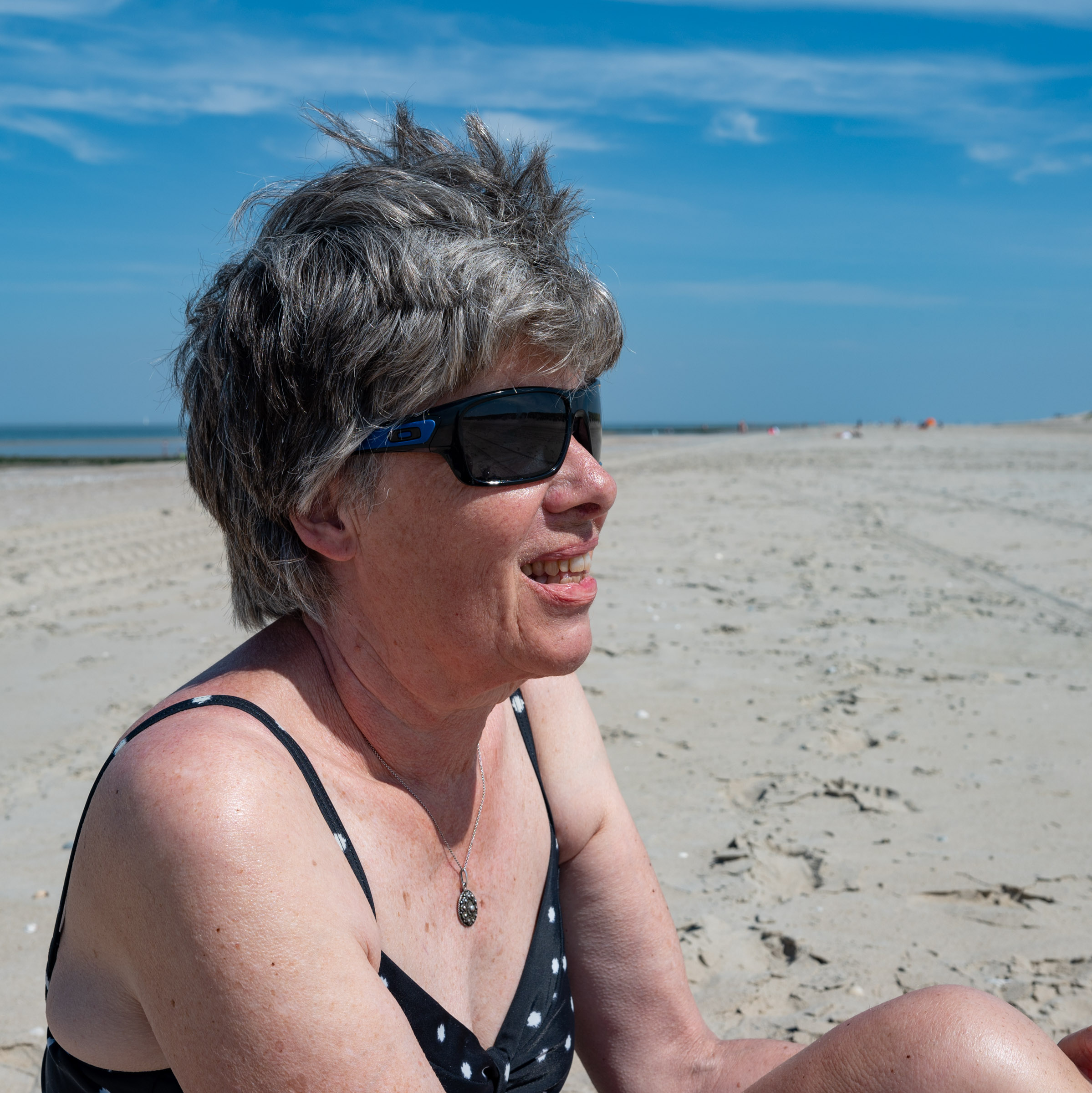 Eergisteren heerlijk ouderwets naar het strand. Met z’n tweeën lopen we helemaal rond de punt van het eiland naar de kant van de Noordzee, op het verlaten brede strand. We zien Terschelling aan de overzijde. Alhoewel het Hemelvaart-vakantie is, is het overal opvallend rustig. Op het strand kun je een kanon afschieten zonder iemand te raken. Even gezonnebaad op onze te kleine handdoeken en het eerste laagje bruin opgebakken. Met je ogen dicht luisteren naar het geluid van de zee en de krijsende meeuwen.