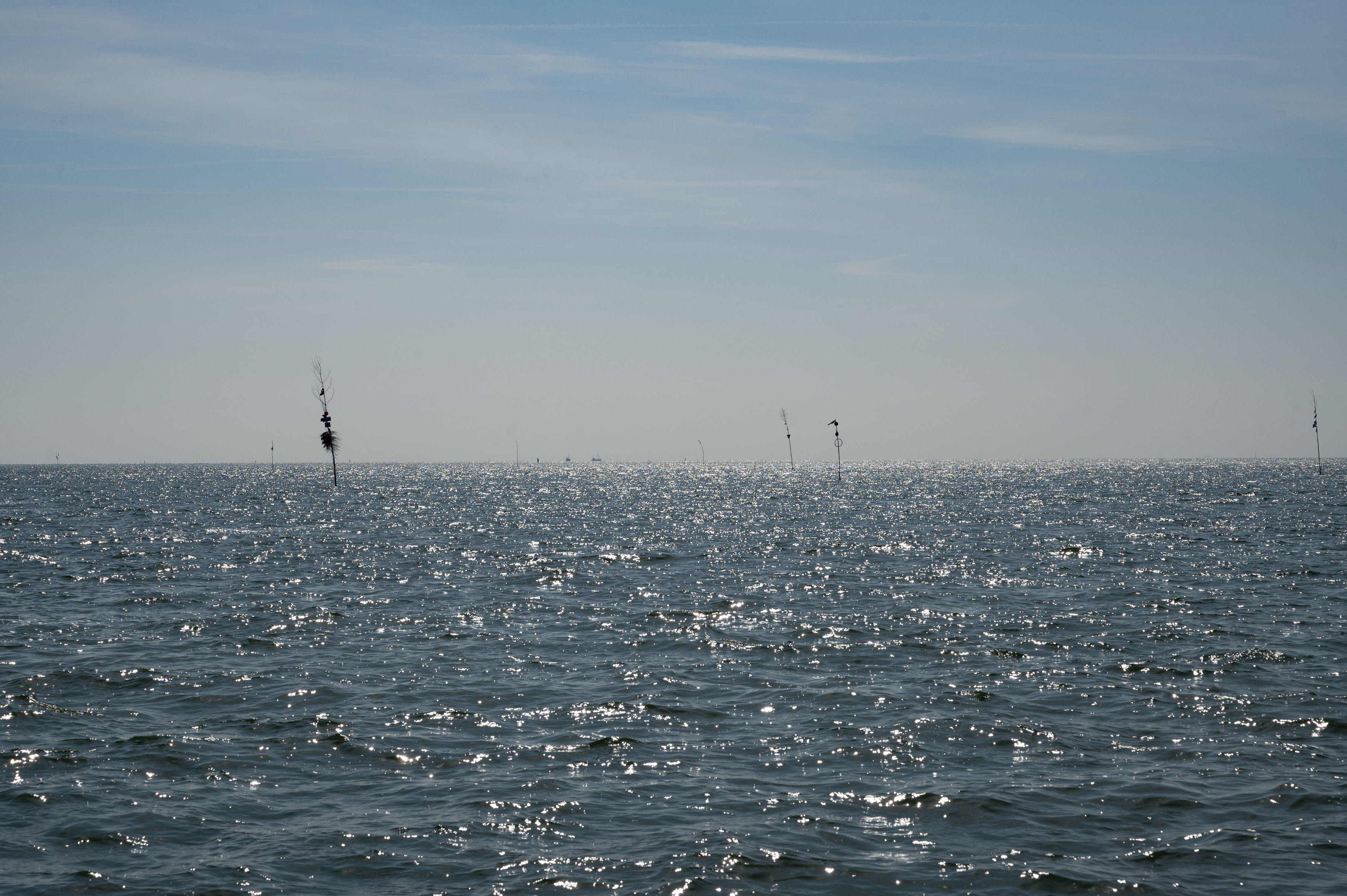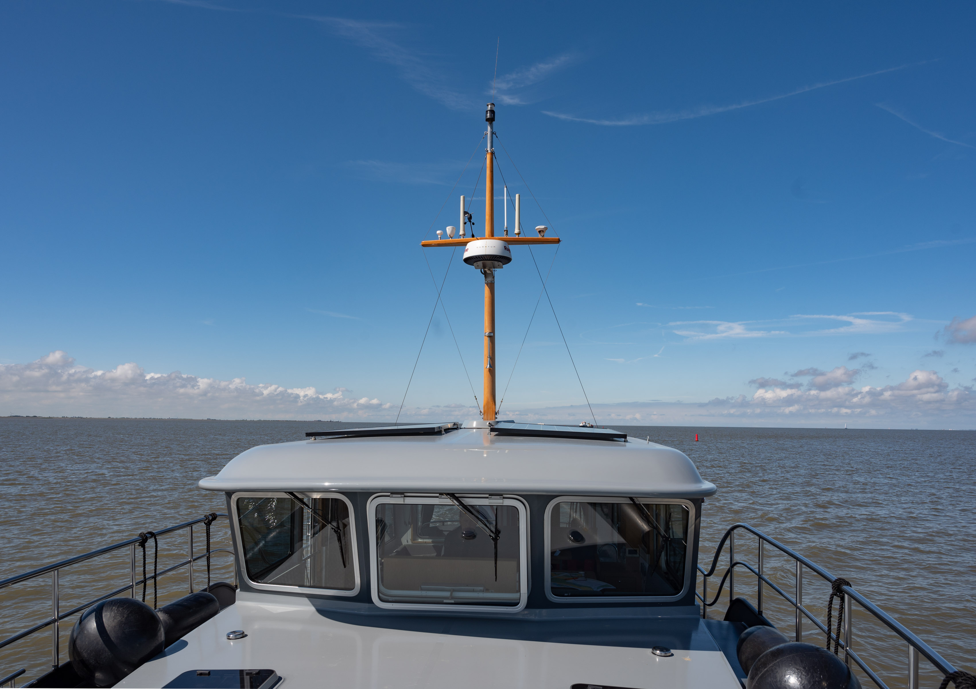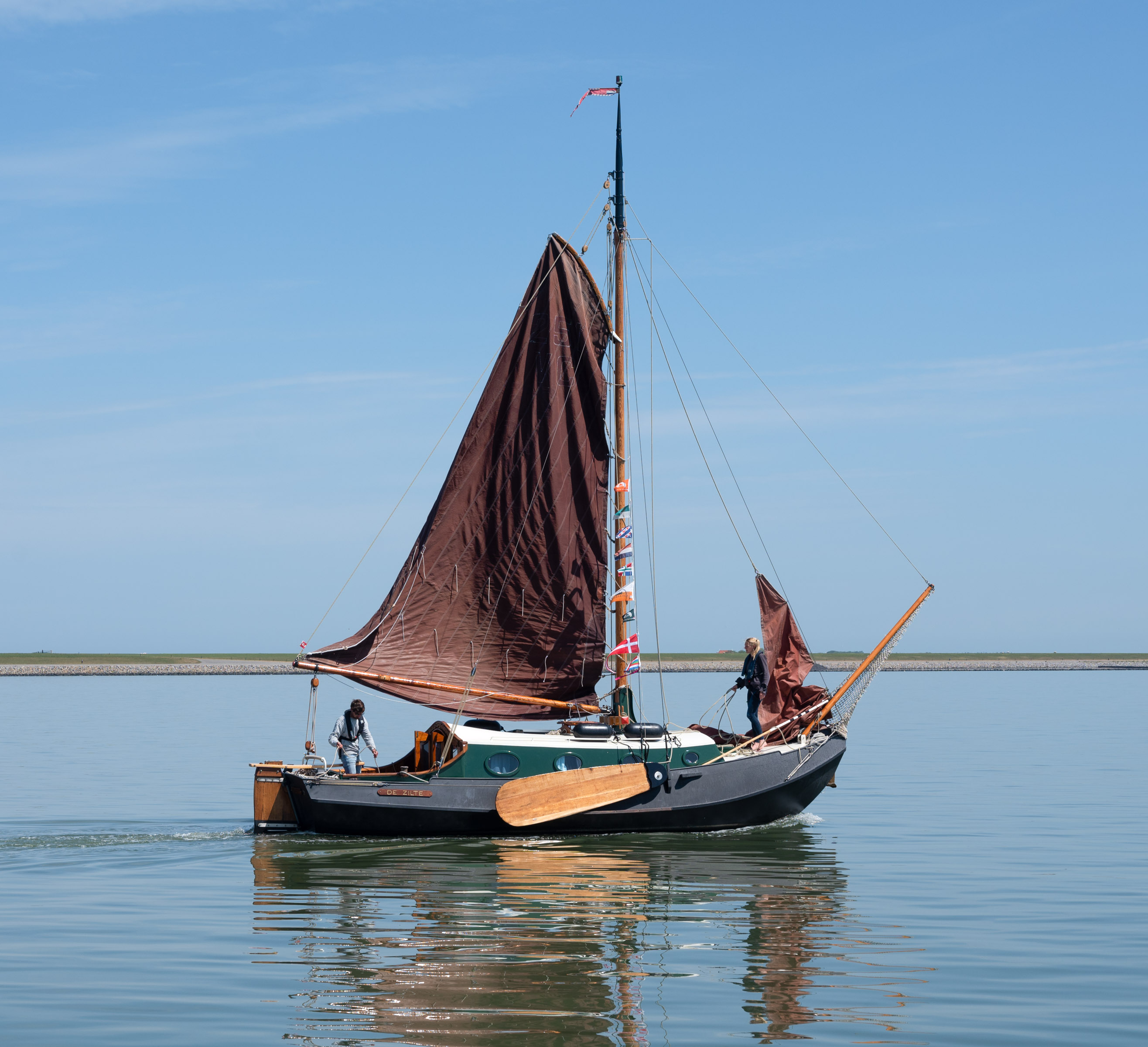 Een paar dagen later vertrekken we vanaf Ameland richting Lauwersoog. Eerder waaide het te veel en was het doodtij. Dus te weinig water om over de wantijen te kunnen komen. De platen vallen bij eb droog en pas bij hoogwater kunnen we er met 1.20 m diepgang overheen. Bij springtij wel te verstaan. De kosmos bepaalt wanneer er meer of minder water is en wanneer we kunnen gaan. We zijn afhankelijk van de natuurlijke ritmes en dat geeft een soort weldadig gevoel. Een met de natuur. Hoe kun je dat beter voelen dan op een boot in het Waddengebied. Spannend, dit keer moeten we wel over vijf wantijen. Gelukkig, alles gaat goed; onderweg spotten we een enkele zeehond. Die steekt nieuwsgierig zijn kopje boven het water uit, om daarna snel weer onder te duiken.