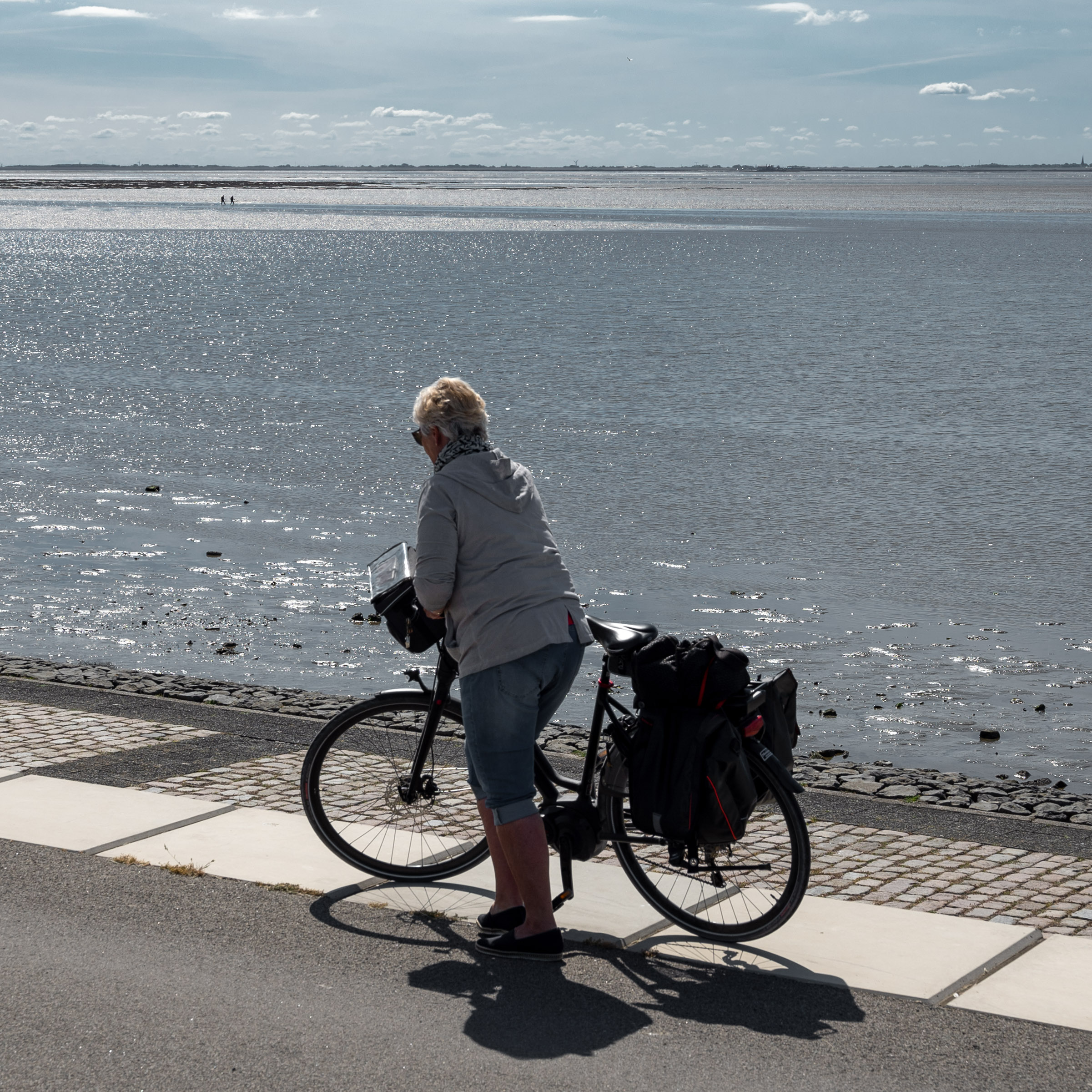 Nadat ze ons, ongepland, twee weken vergezeld hebben zijn Jos en Rolf vertrokken. Weer hun eigen weg. Het was hartstikke leuk met elkaar. Gezellig bij de een of de ander aan boord. Praten over van alles, en het Wad. Stukje wandelen, plantjes en vogels kijken. Genieten van dit bijzondere landschap. Of gewoon kijken hoe de ander het doet. Jos en Rolf gaan meestal hun eigen gang. Fietsen een eind en wandelen dan een stukje. Ria en ik hebben een autootje gehuurd. Dat ontlast Ria’s knieen en zo komen we toch op de uiteinden van het eiland. Bij de mooie vuurtoren, het landschap bij Roosduinen en de dorpen. Twee dagen trek ik er met Rolf op uit. Maak foto’s van de koeien, van het strand of van het bos; Rolf is gefocust op wat er vliegt en zingt. Leuke combinatie.