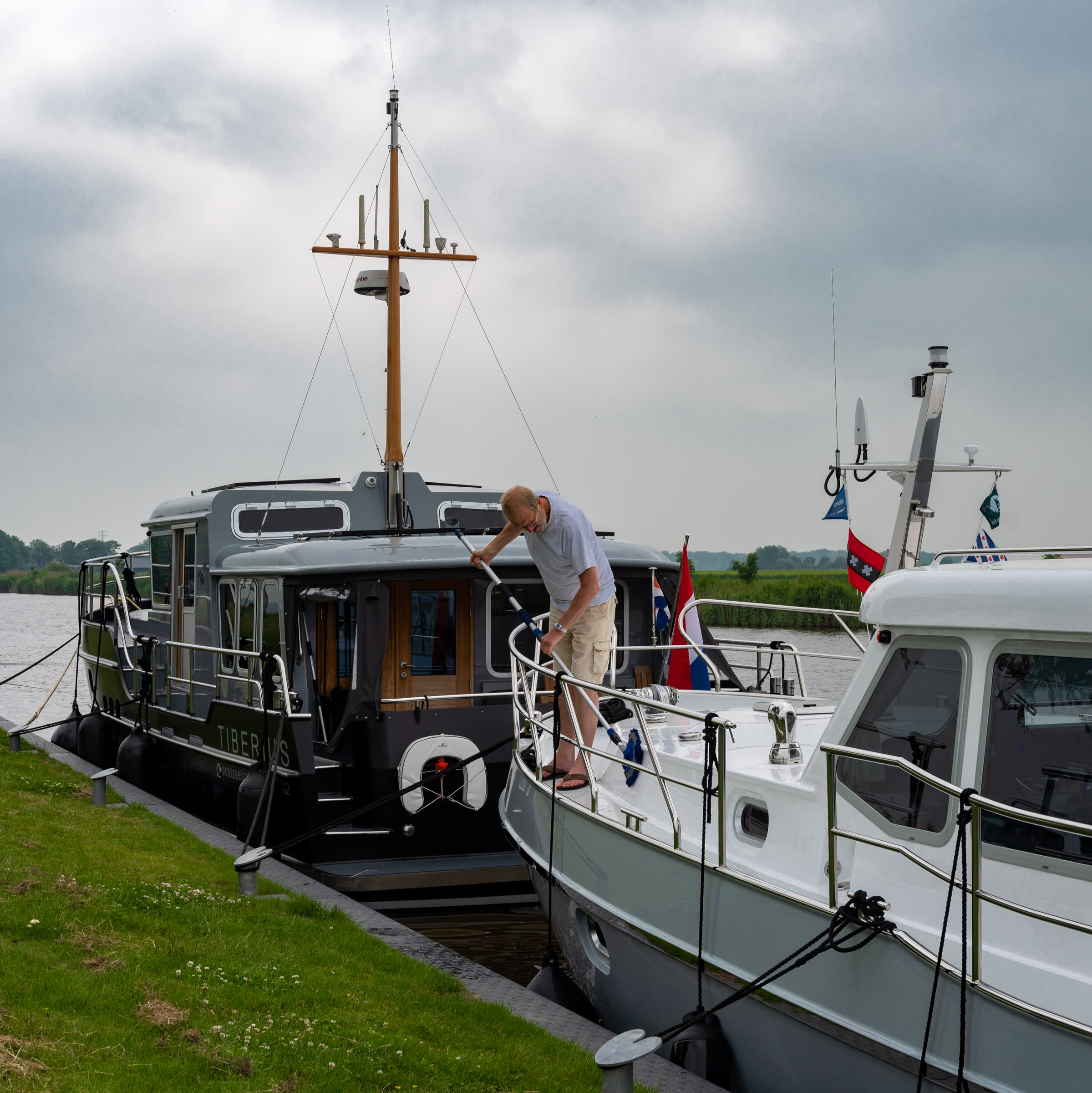 Vanmorgen hadden we ons voorgenomen naar Medemblik te varen, na verblijf van een week in Enkhuizen. Ik wilde erg graag buitengaats na een week hard werken aan een aantal projecten. Omdat Ria haar knieën steeds meer weigeren te doen waarvoor ze dienen gooi ik los terwijl Ria voorzichtig de haven uit vaart. Ik neem buiten de haven het stuur over en ga er eens lekker voor zitten. Heerlijk! Zo lang we in de luwte van Enkhuizen, langs de dijk varen, is het rustig. Maar in de verte zie ik al wat kopjes op het water. Stom niet goed genoeg op onze weer.app gekeken. Als we eenmaal het ruime sop kiezen en 45 graden bakboord afbuigen richting Medemblik wordt het toch wel serieus. Het is in ieder geval lang geleden dat we Tiberius zo hebben voelen stampen. Gelukkig slingerden we niet veel omdat ik de stabilisers heb aangezet. Maar tegen stampen helpt dat niet. Ik moest er op deze wijze aan herinnerd worden dat we hebben geleerd dat omslaande kopjes op het water richting windkracht 5 gaat. En op het IJsselmeer zijn die kopjes kort en vervelend. Na een kwartiertje kijk ik Ria aan en vraag of we zo door gaan. Nou liever niet zegt Ria. Straks moeten we nogmaals twee keer bakboord uit en hebben de wind van opzij. Lijkt haar niet zo prettig. Dus maar weer omgedraaid en na een uurtje varen weer vastgemaakt in Enkhuizen. We gaan het morgenvroeg gewoon nog maar een keer proberen. Dan staat er in ieder geval 5 knopen wind minder. We zullen zien.