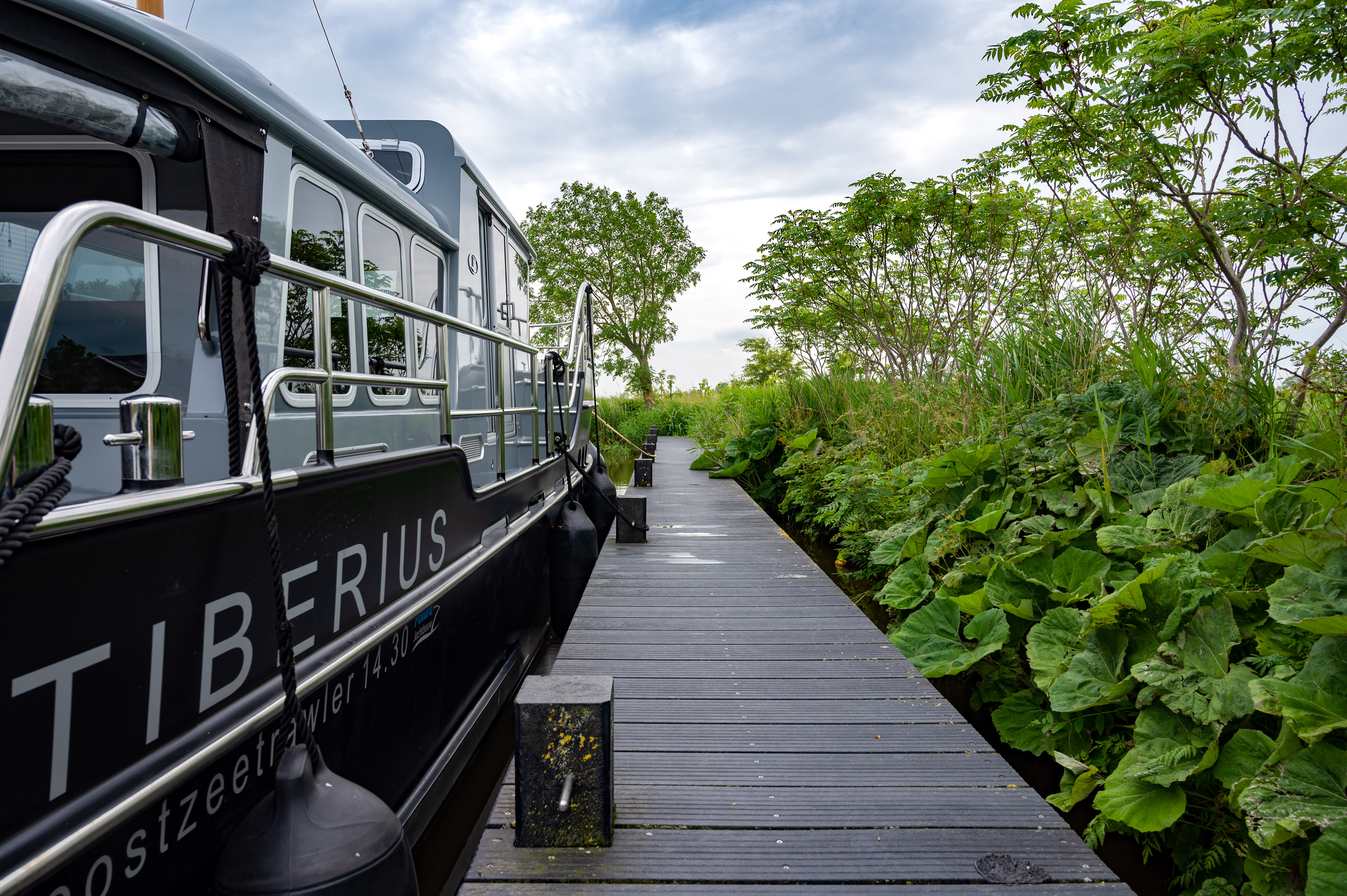 Dijk bij Makkum, links Tiberius aan de steiger.